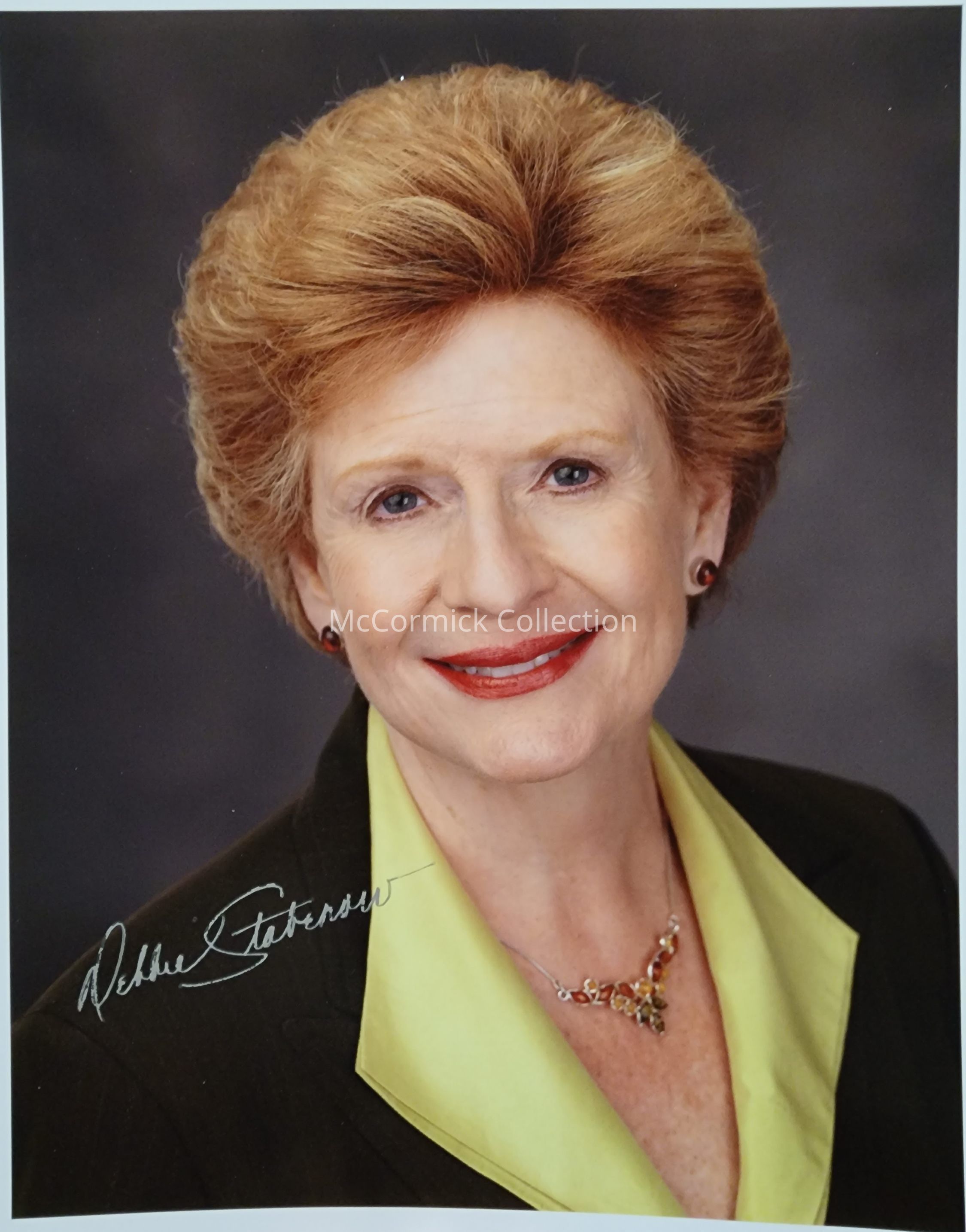A color 8x10 photograph headshot of U.S. Senator Debbie Stabenow, signed in silver marker.