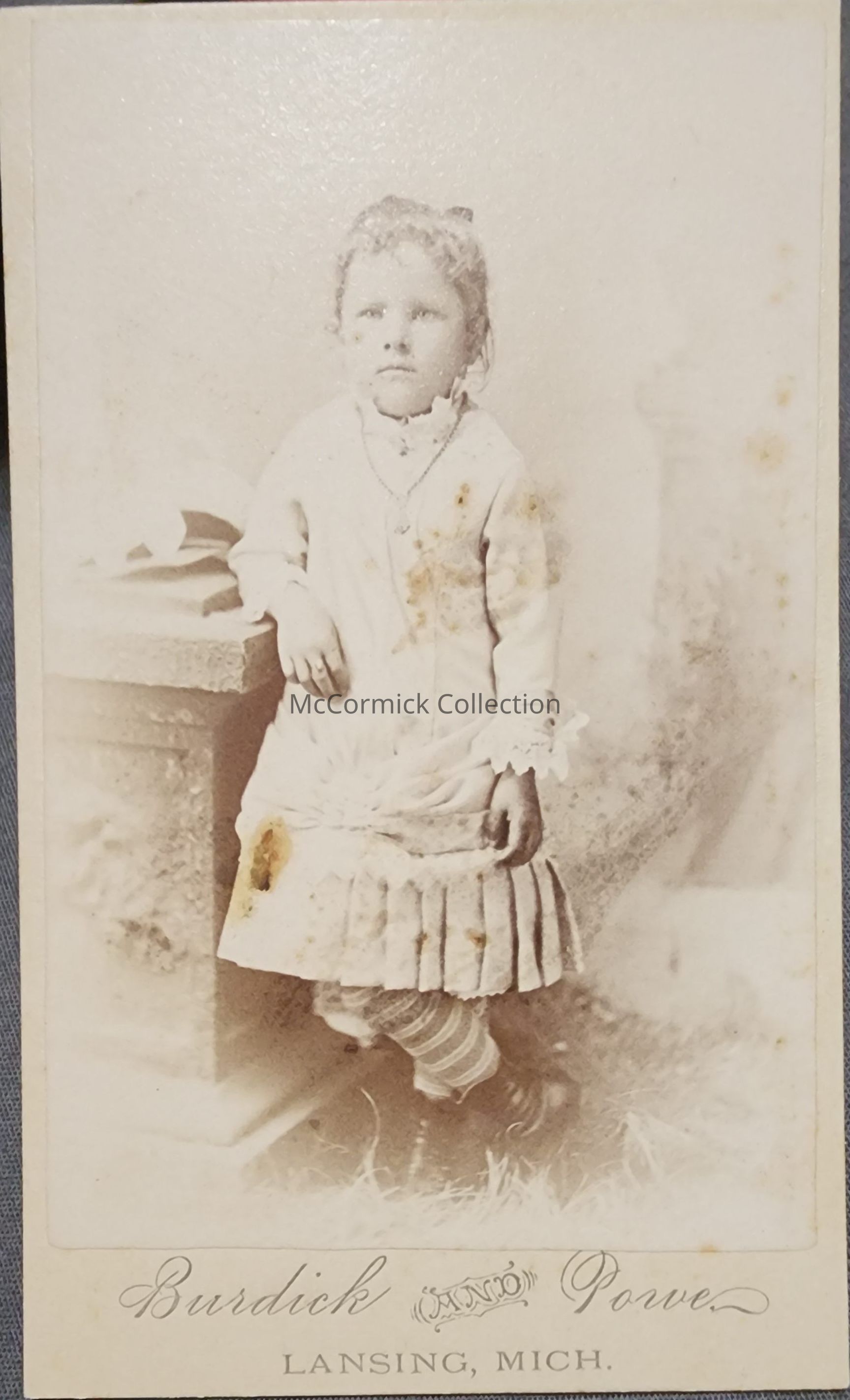 Carte de visite photograph of an unidentified child by Lansing photographer Burdick and Powe.