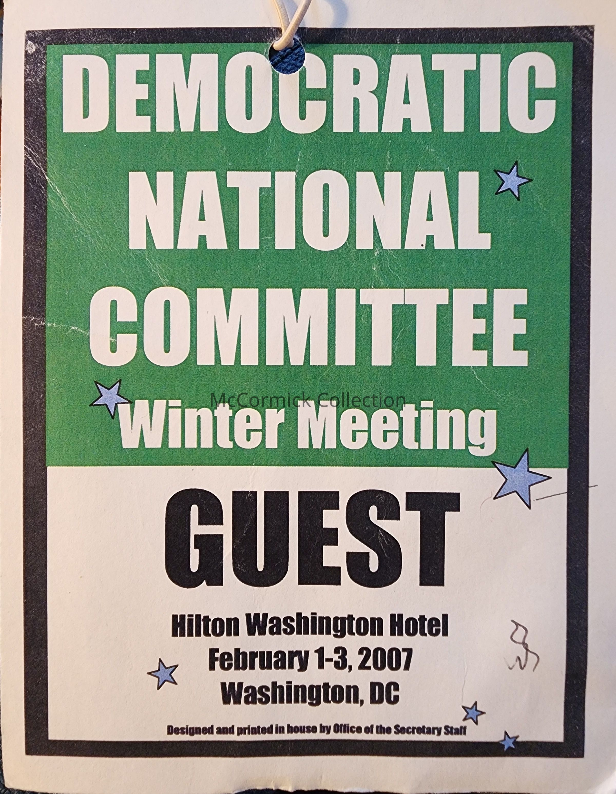Democratic National Committee Winter Meeting, 2007, Guest Credential, Signed by Obama