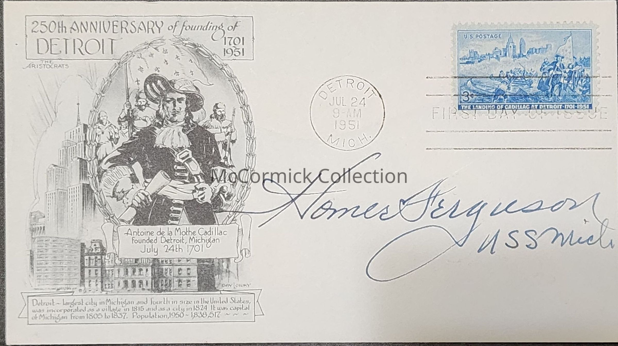 Detroit 250th Anniversary First Day Cover, 1951, signed by Homer Ferguson