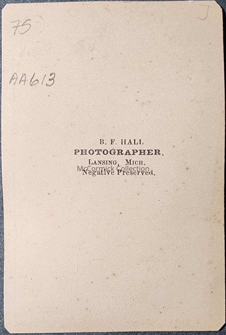 Carte de visite photograph of an unidentified couple by Lansing photographer Hall.