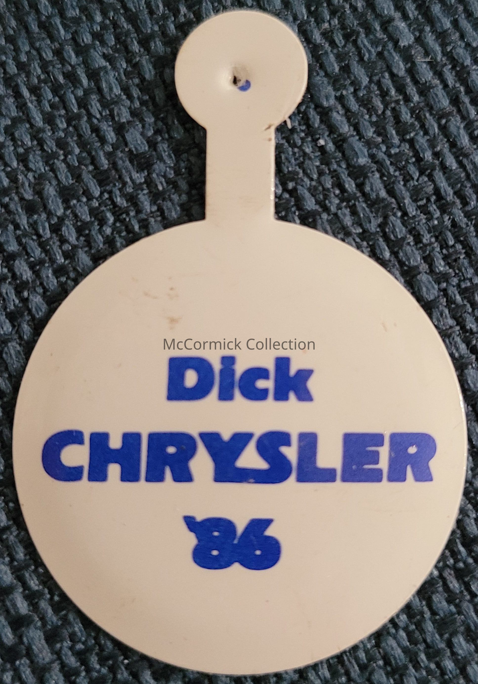 Political tab for Dick Chrysler in his 1986 primary campaign for Governor of Michigan. He lost the primary election to William Lucas.