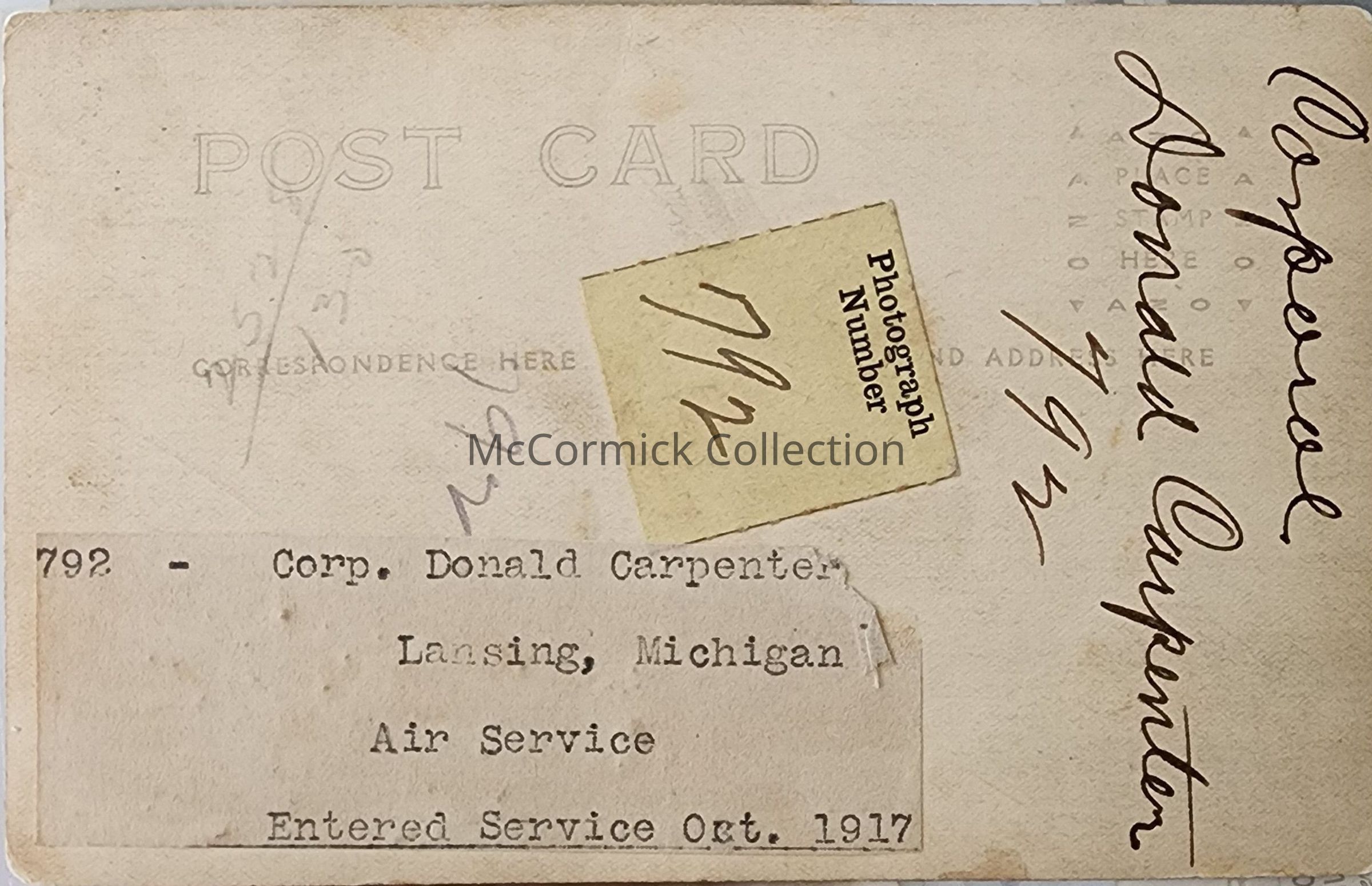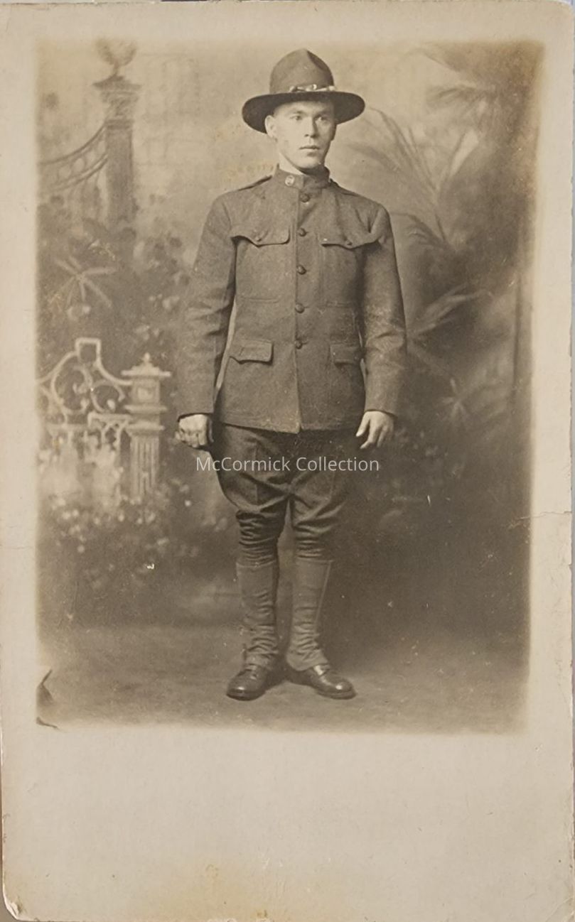Real photo postcard of Corp. Donald Carpenter of Lansing, circa 1917.