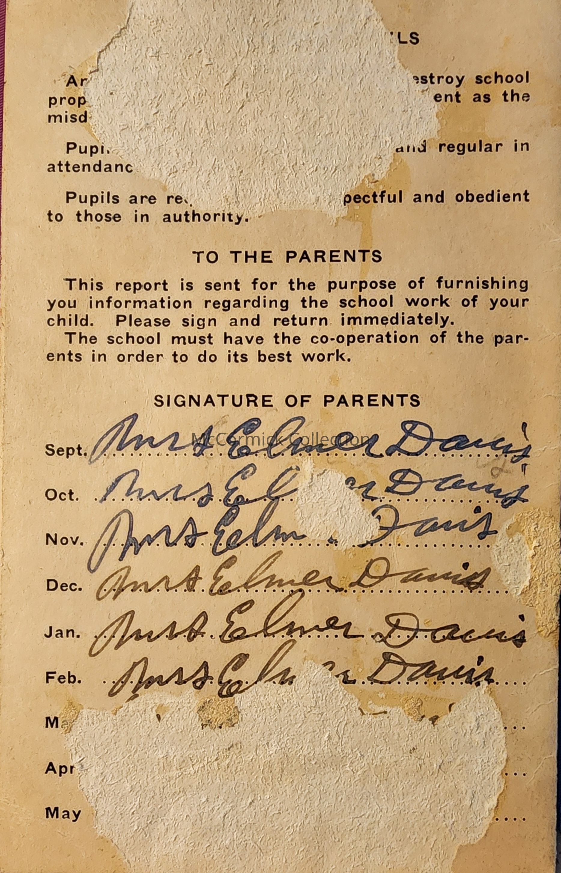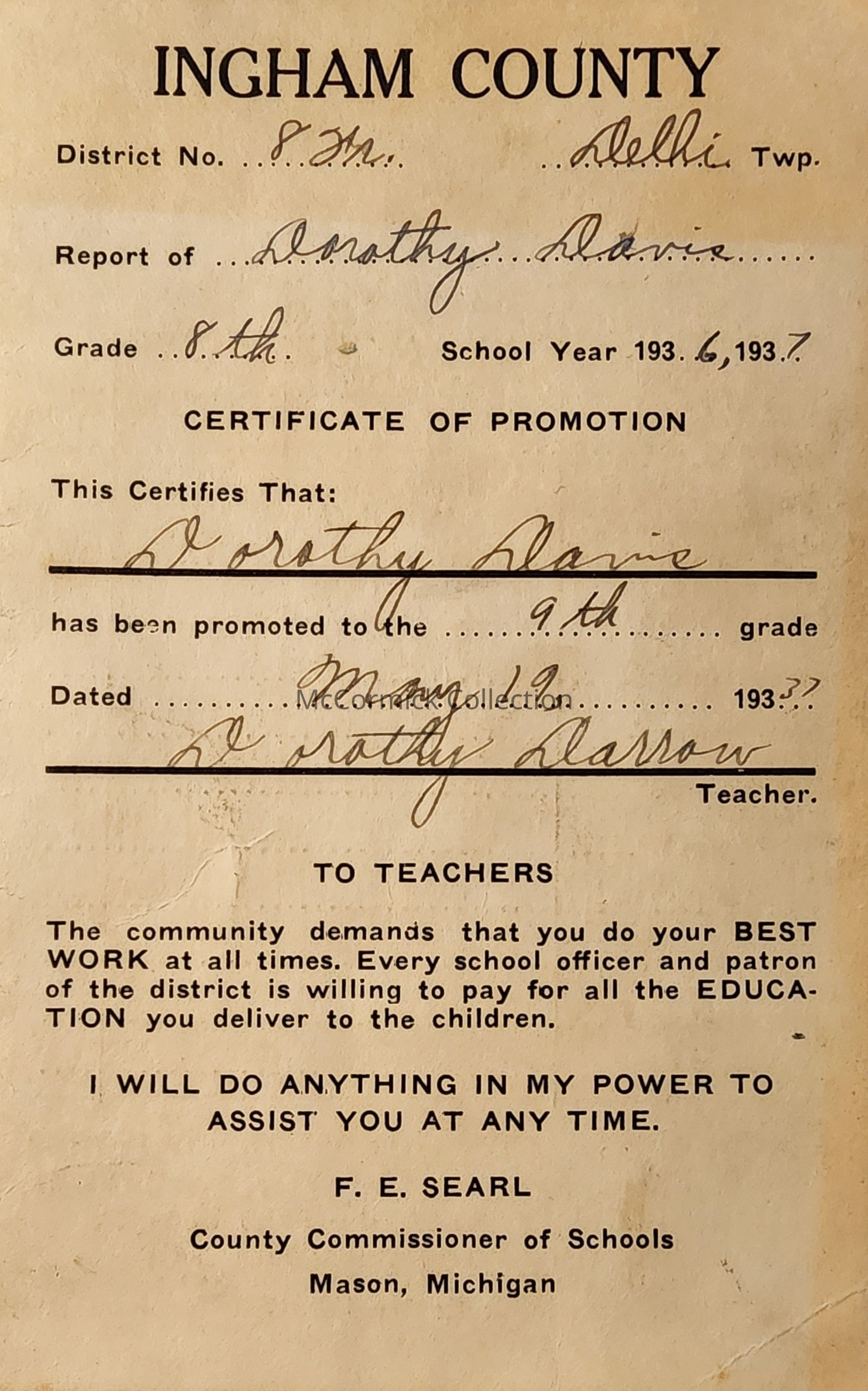 Dorothy Davis, Ingham County School Report Card, 1936-37