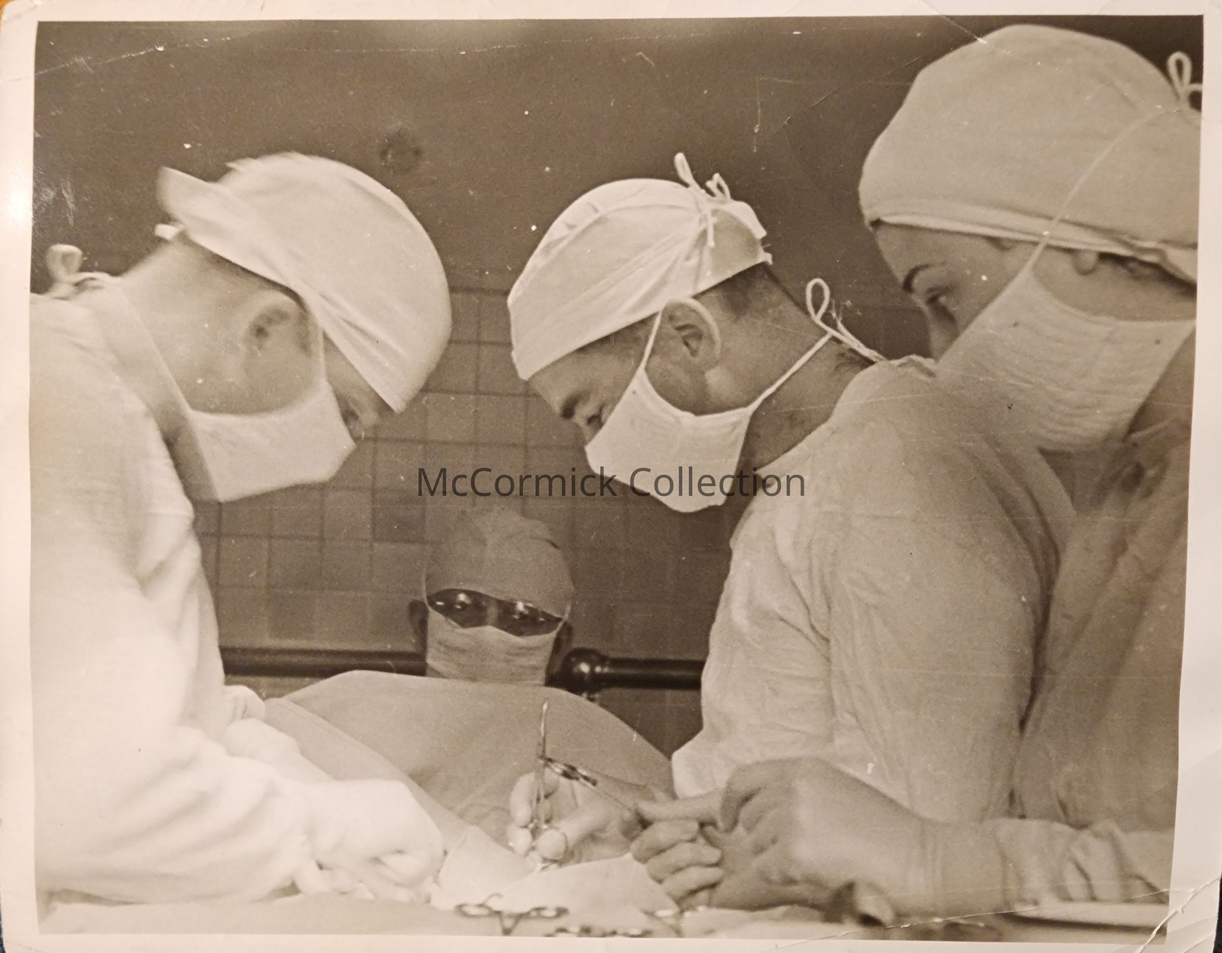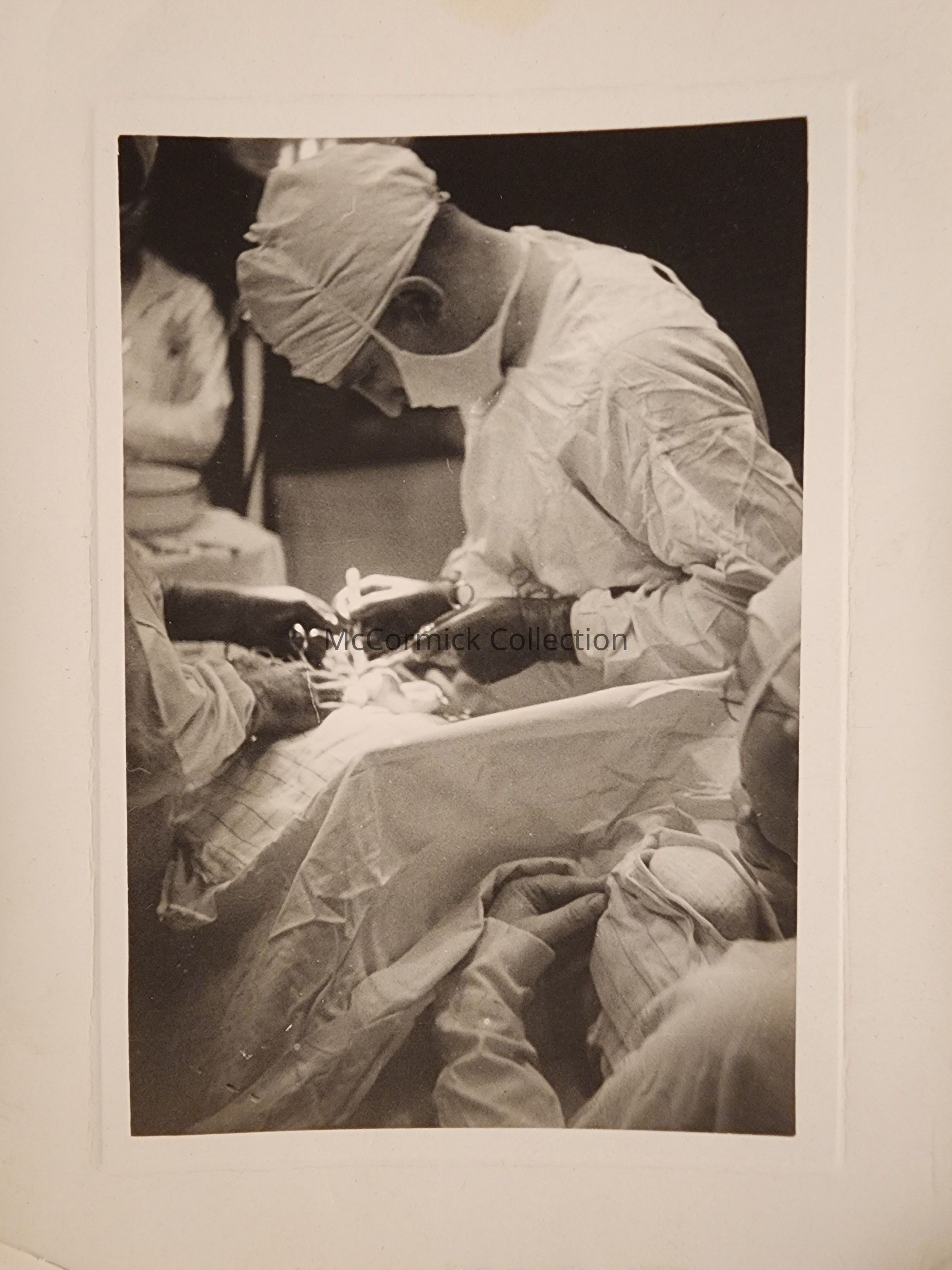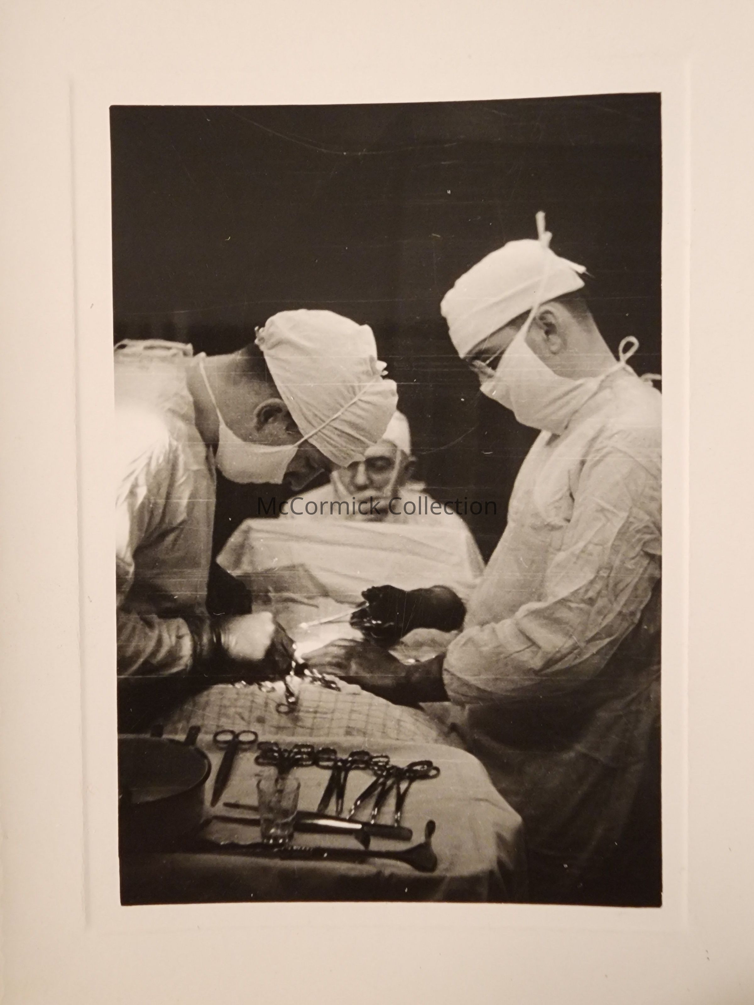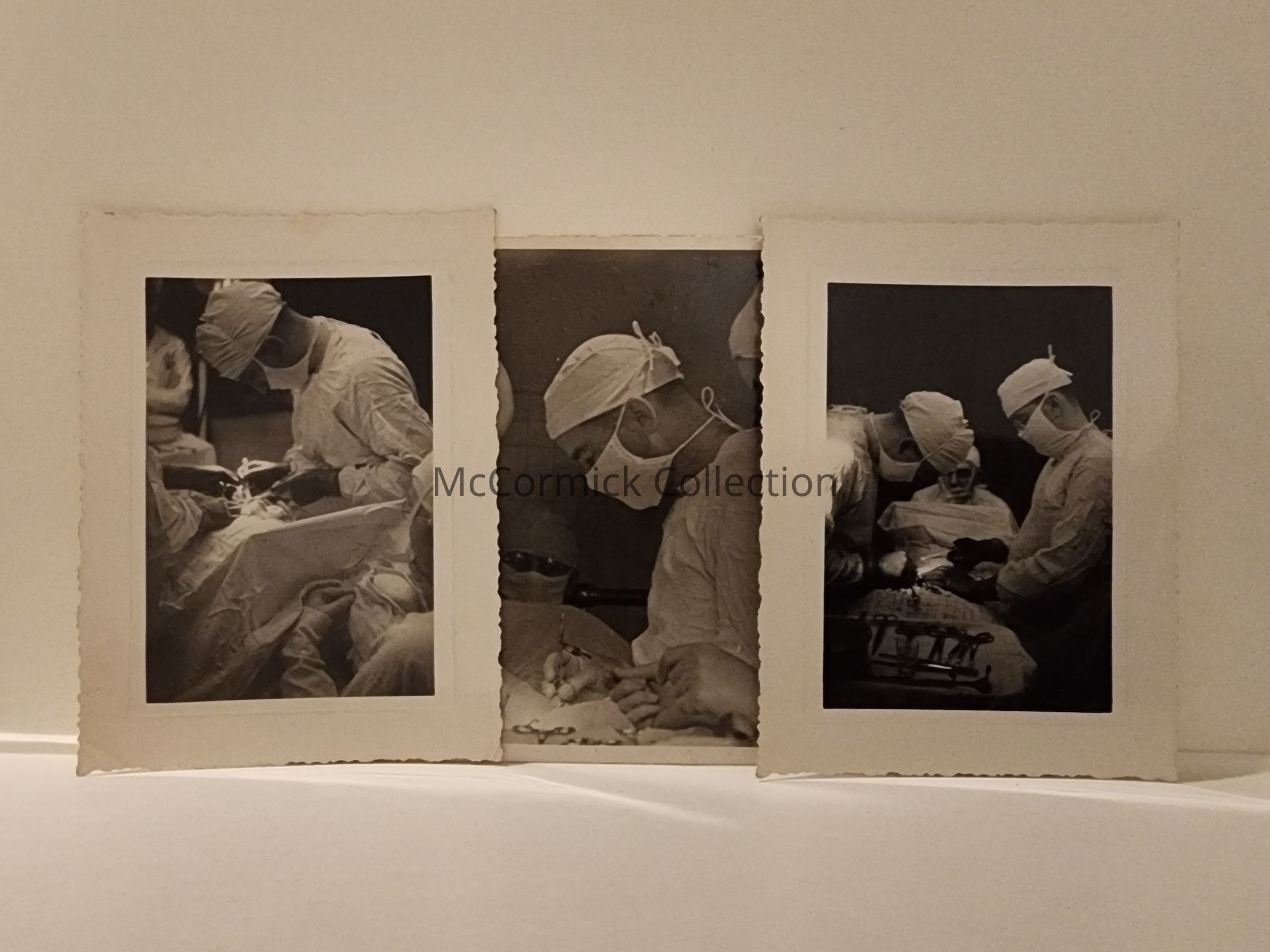 Group of 3 snapshot photographs of Dr. John Wellman performing a surgery in Lansing. Developed by Linn Photo Co., circa 1936.