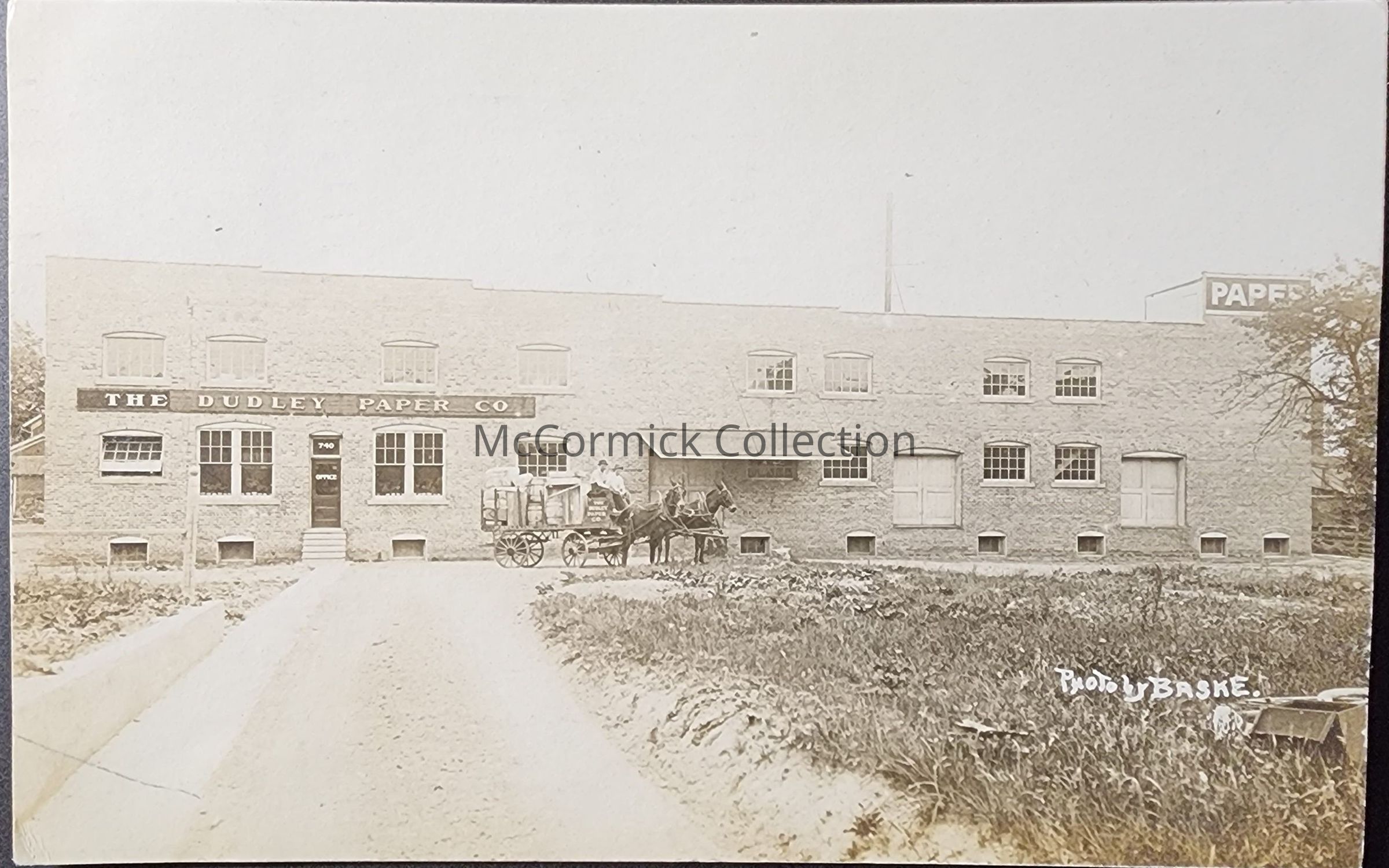 Real photo postcard of the Dudley Paper Company in Lansing. By Lansing photographer Baske. Postally used, 1914 Lansing postmark.