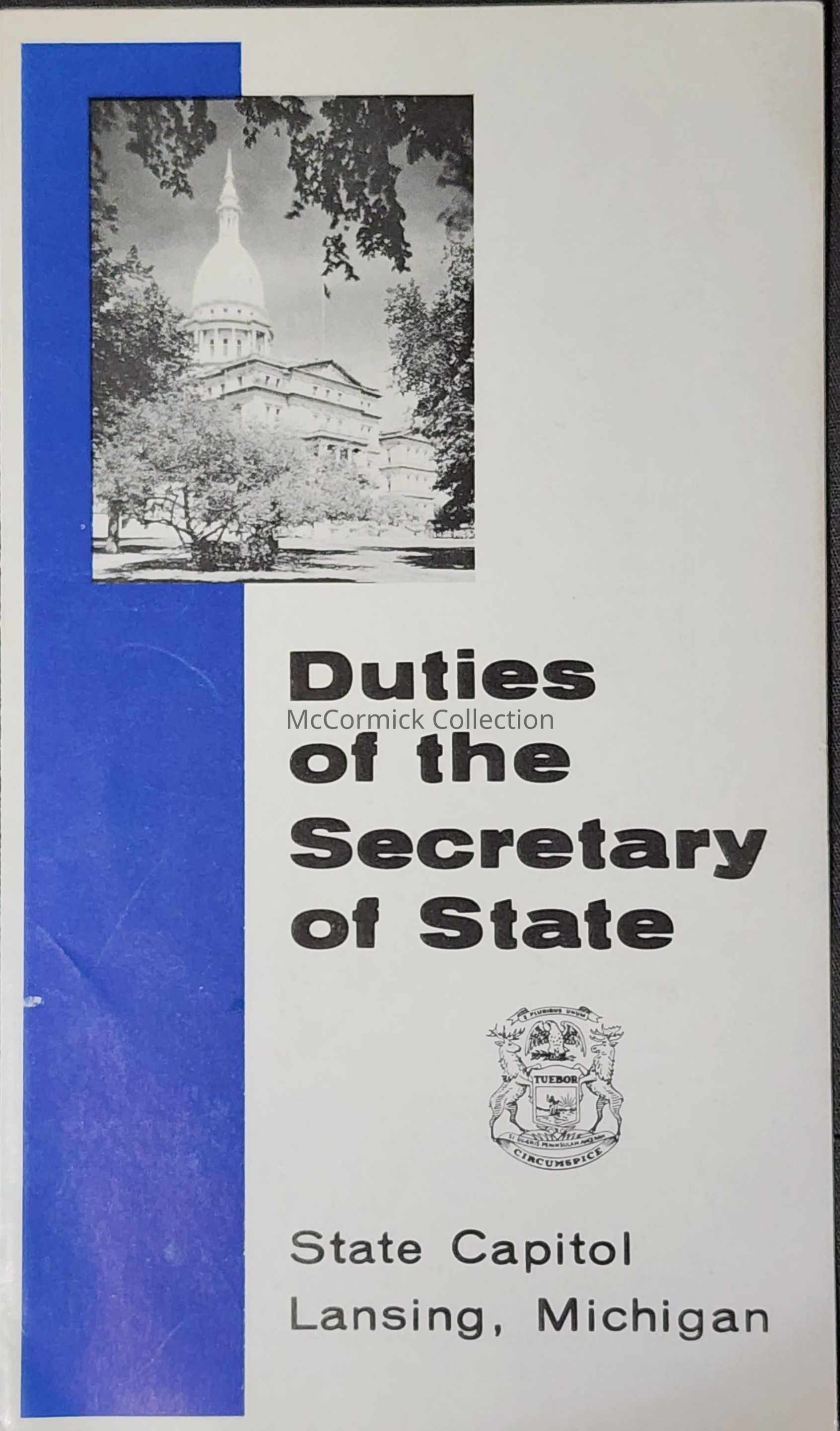 A Pamphlet outlining the duties of the Michigan Secretary of State.