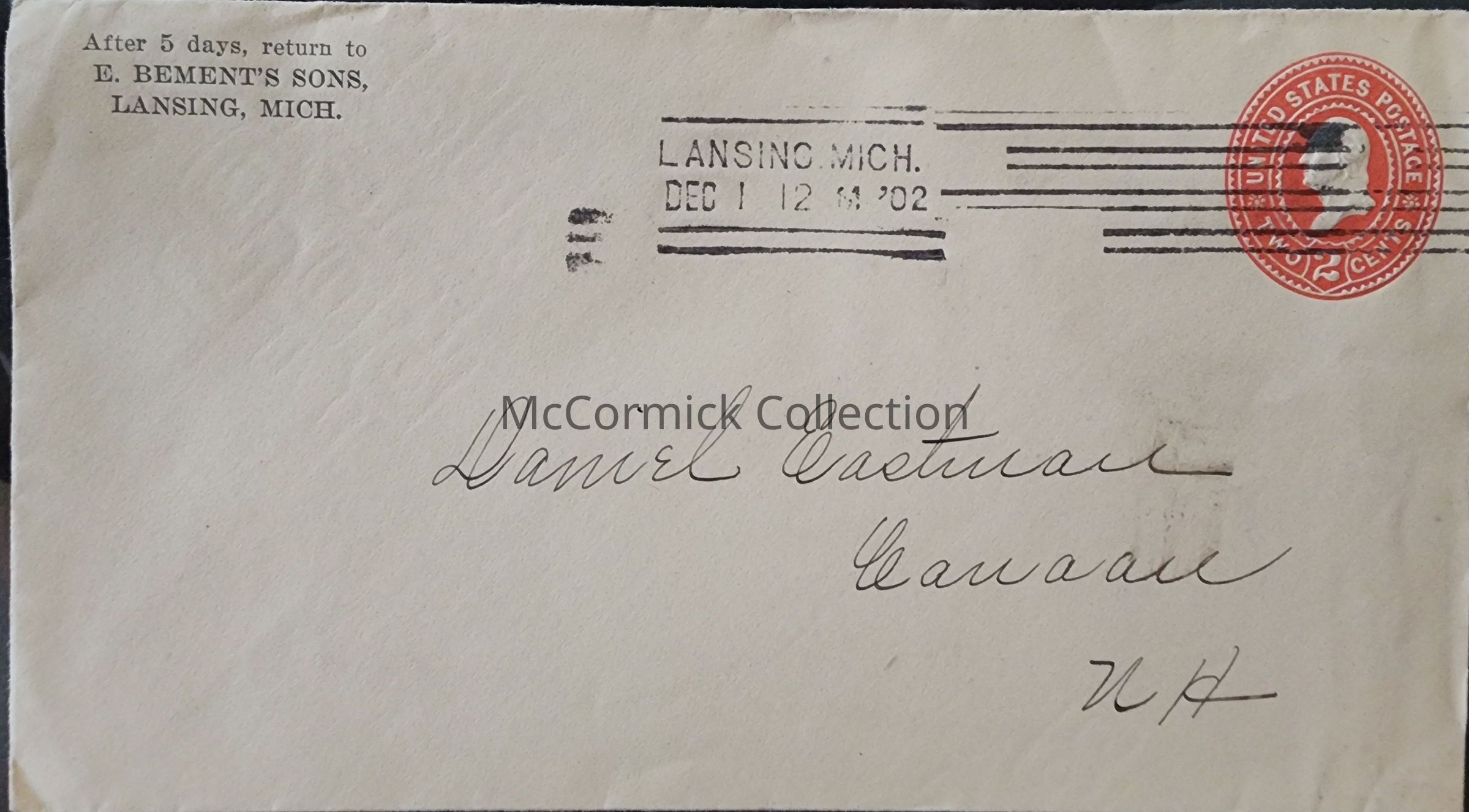 E. Bement's Sons, Lansing, Mich., 1902, Postal Cover