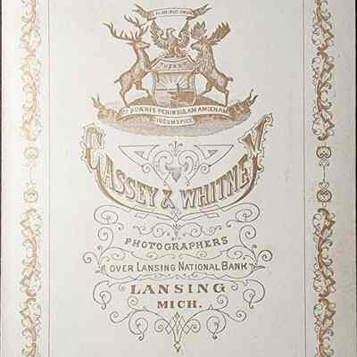 Cabinet card photograph of an unidentified couple by Lansing photographer Cassey and Whitney.