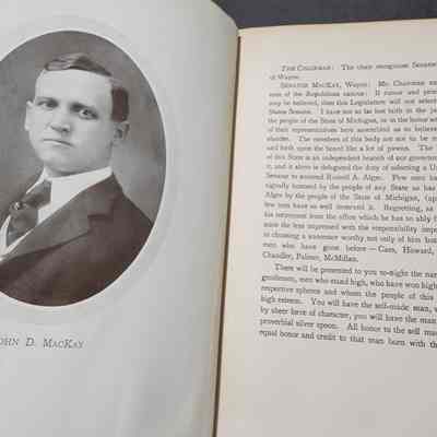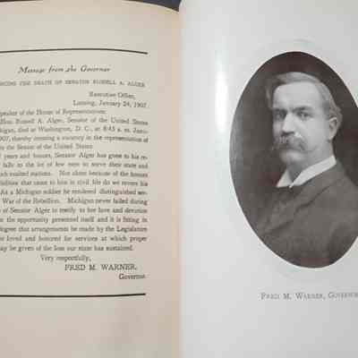The published proceedings of the 1907 session to nominate a United States Senator from Michigan by the state legislature in Lansing. The State and U.S. Capitols are pictured on the cover.