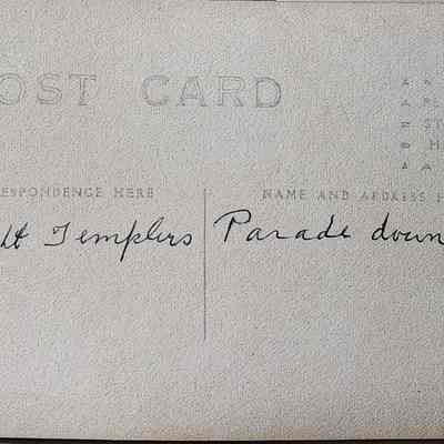 Real photo postcard of a Knights Templar Masonic parade on Washington Ave in Lansing. Reversed photo. The tower shown is Lansing City Hall. The building to the right with bunting is the Hollister Building. Taken from the roof of the Hudson House. Postally unused.