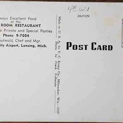 Sky Room, Capital City Airport, Lansing, Michigan Postcard
