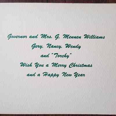 Christmas card from the family of Michigan governor G. Mennen Williams, circa 1950s. Not dated.
