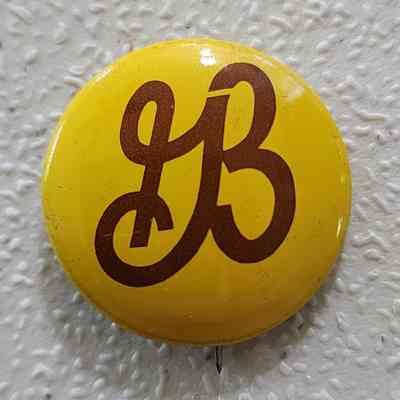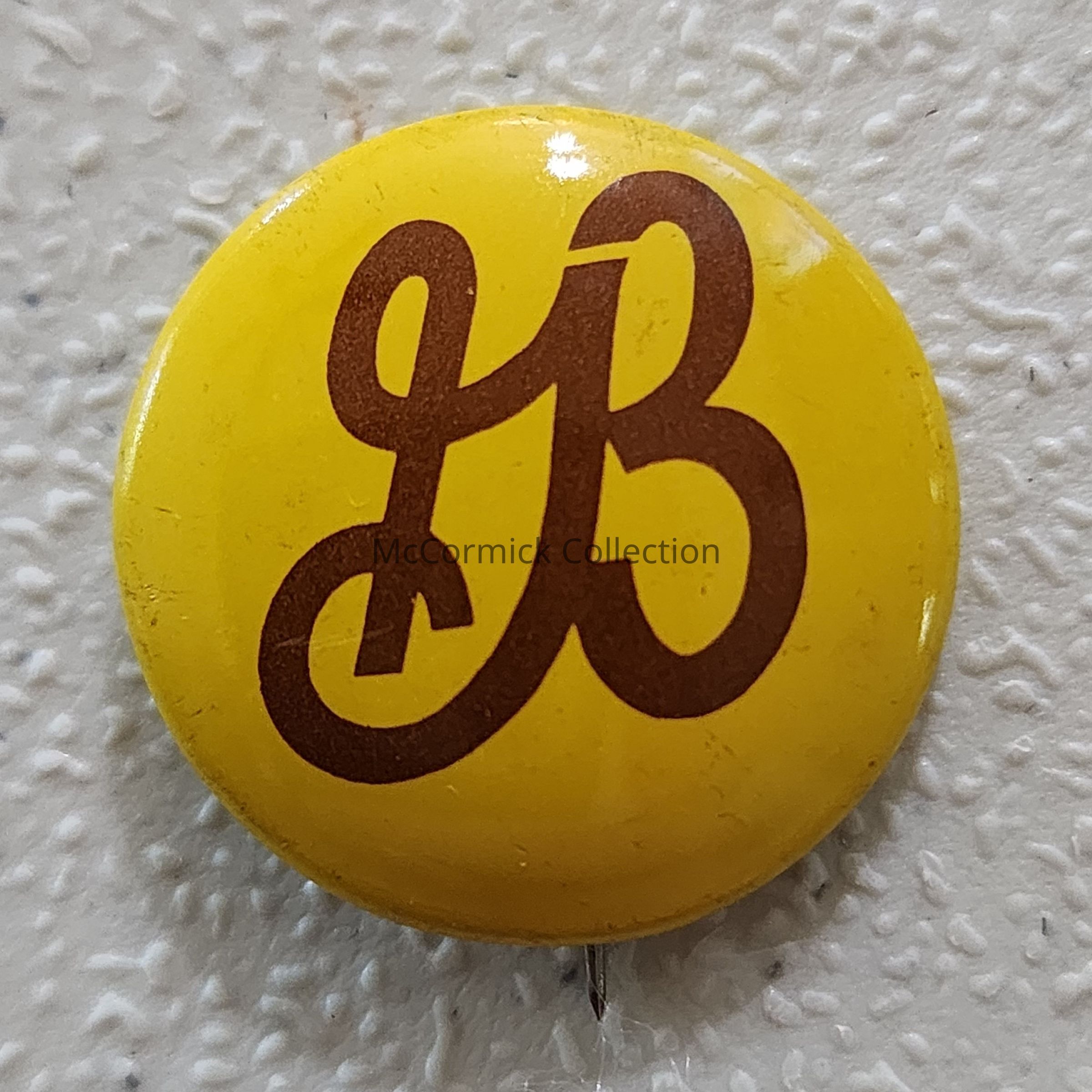 A 7/8" brown and yellow political button for Garry Brown for Congress.