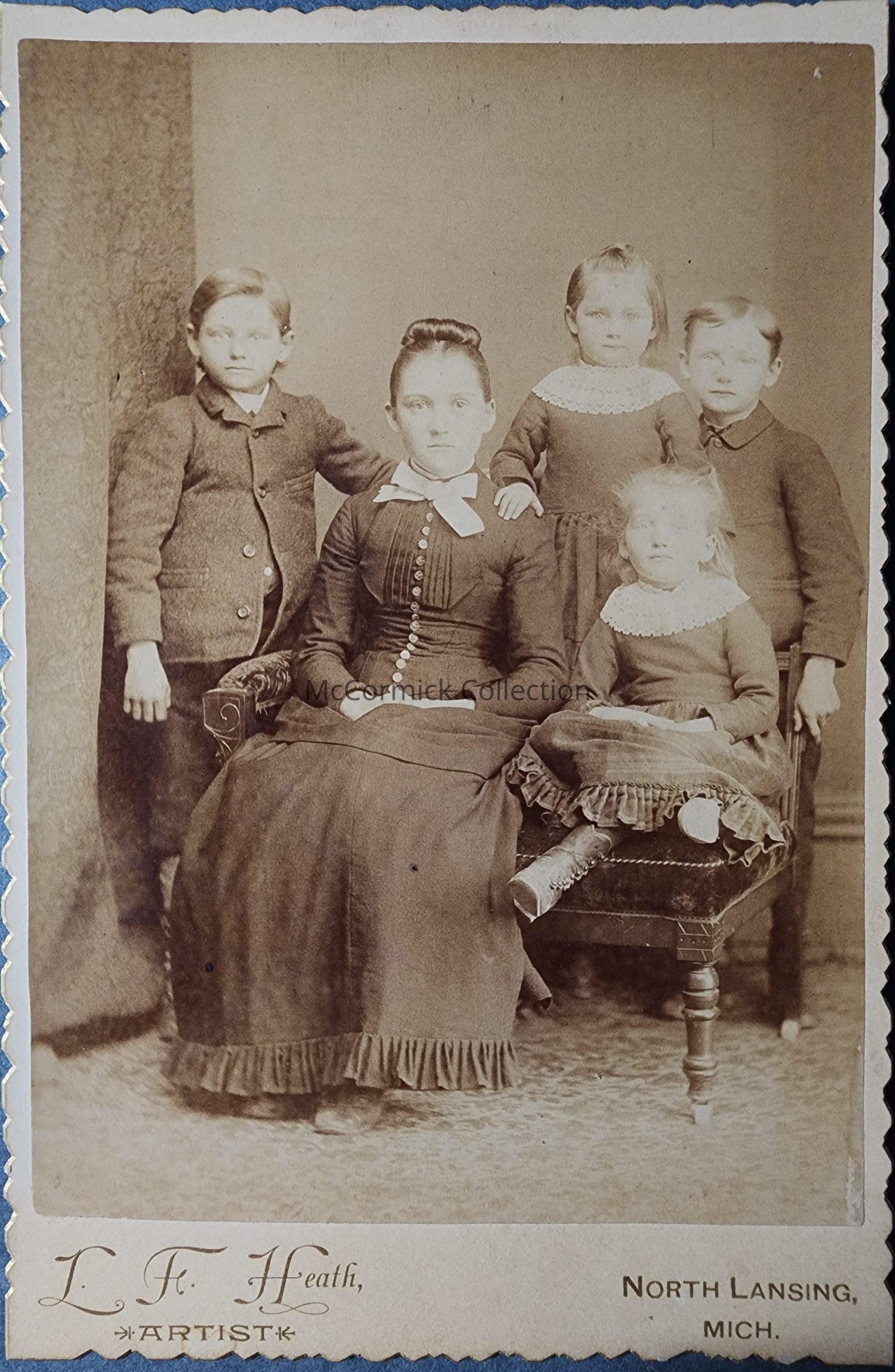Cabinet card photograph of unidentified children by North Lansing photographer Heath. Circa .