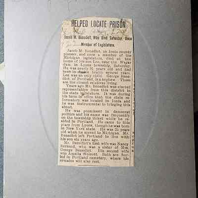 Card mounted photograph of State Representative Jacob M. Benedict of Ionia by Portland, Michigan, photographer Whitcomb.