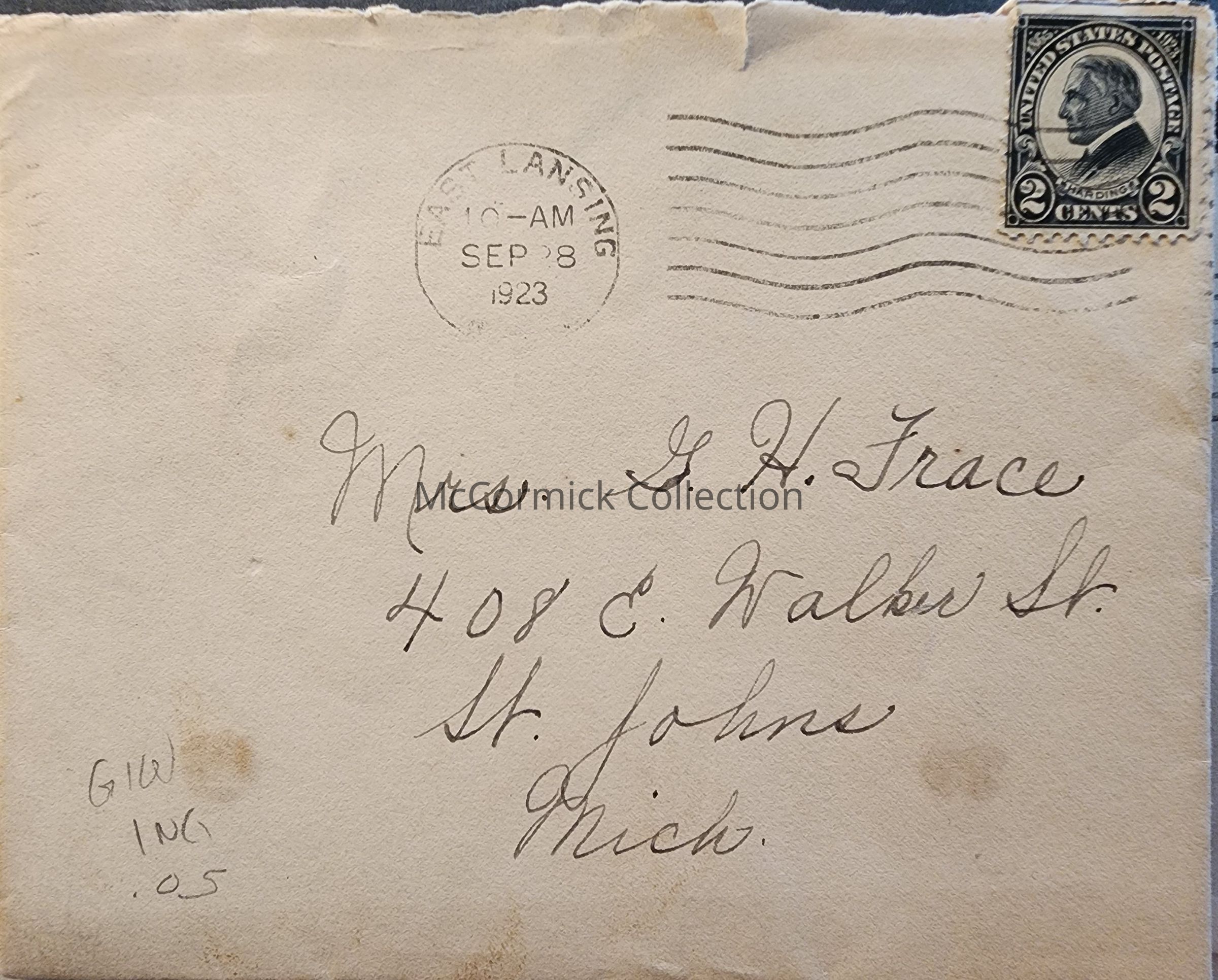 East Lansing, Mich., 1923, Postal Cover