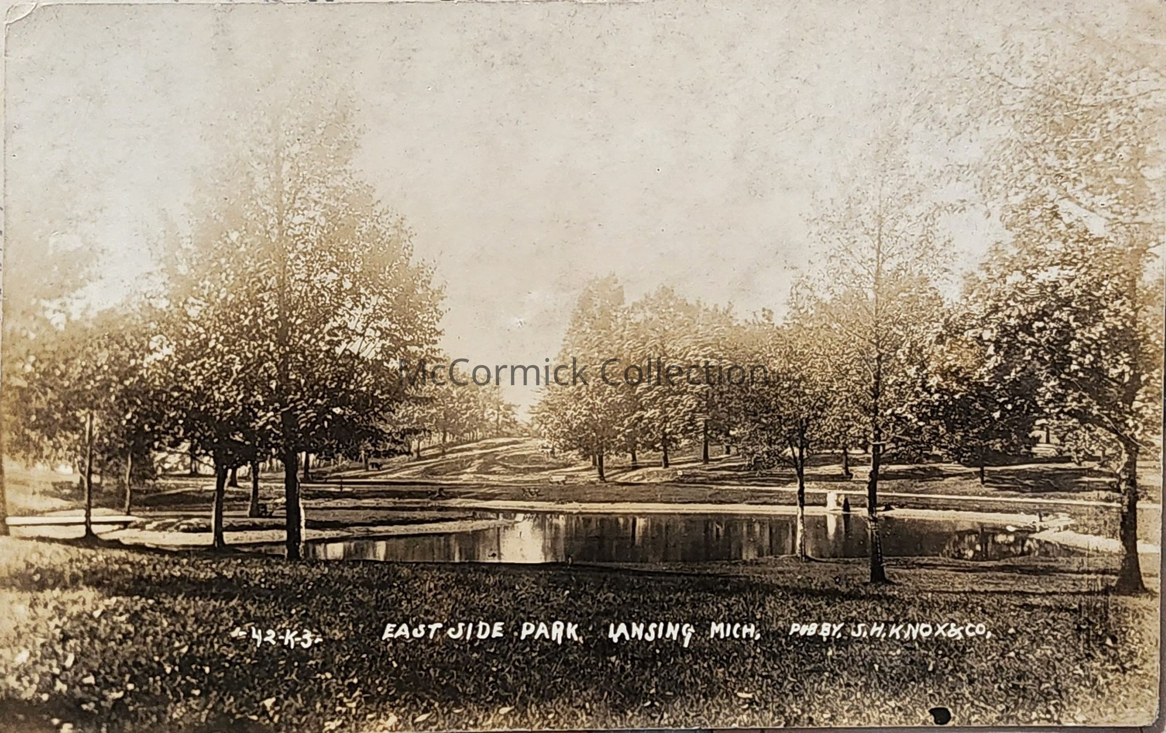 Real photo postcard of East Side Park, now Oak Park and once the City Cemetery, published by S.H. Knox, Lansing. Postally unused. Negative number is 42-K-3.