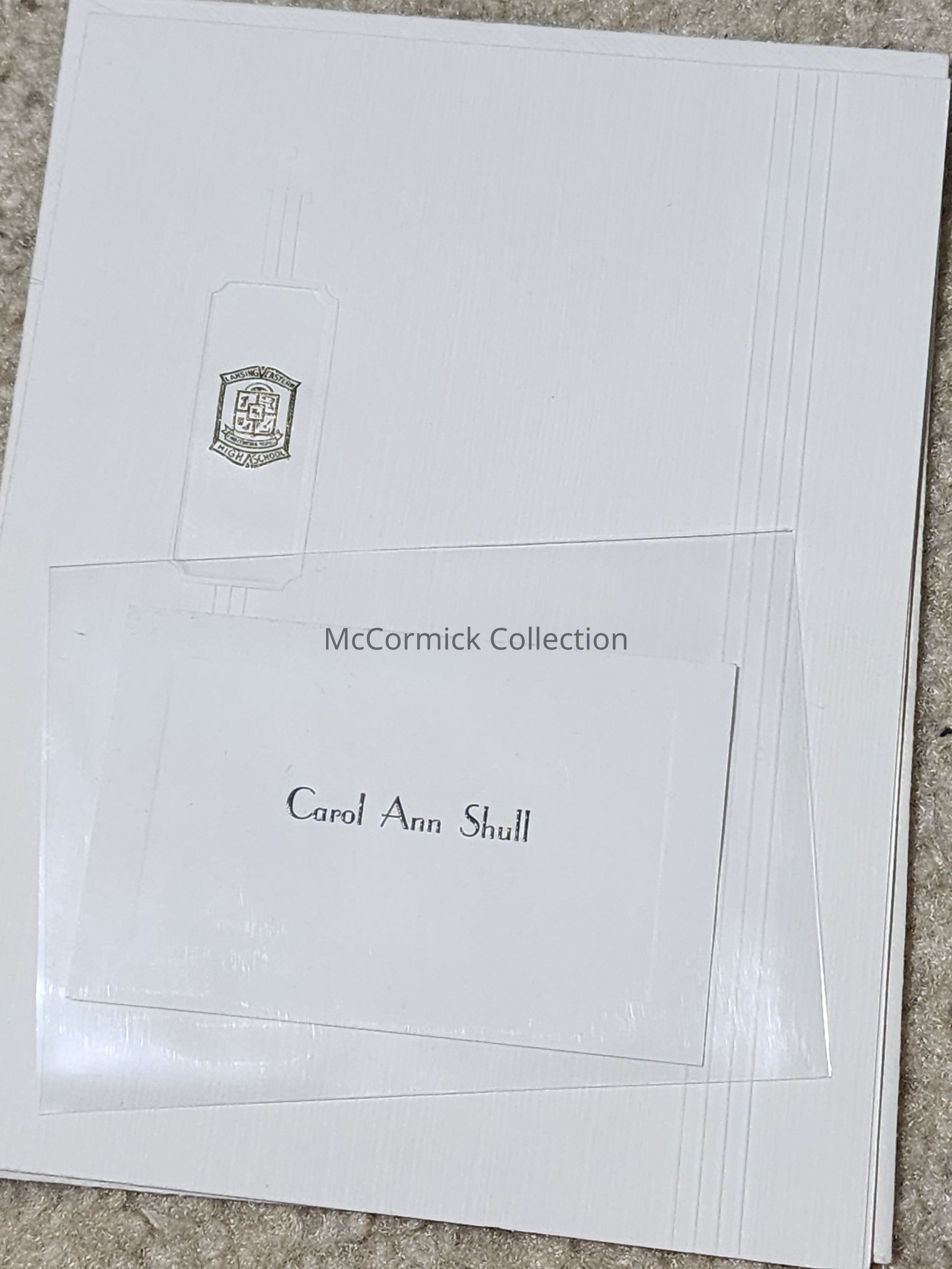 Lansing Eastern High School. Belonged to Carol Ann Shull. Includes 5 small photographs.