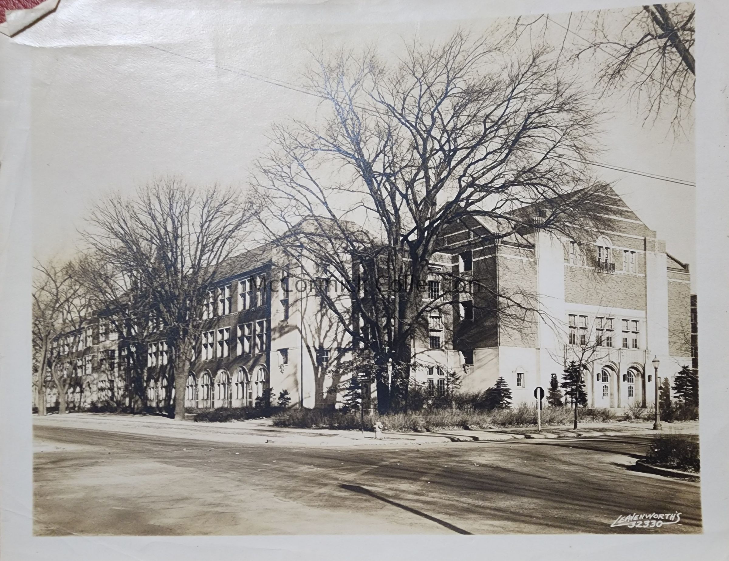 Photographic print of Lansing Eastern High School by Lansing photographer Leavenworth. Two copies.