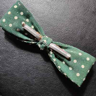 Small clip on bowtie in the Soapy Williams style. This is from the estate of a Michigan judge and Democratic Party official. Unclear if this was a gift of Williams or just in his style. Ormond maker.
