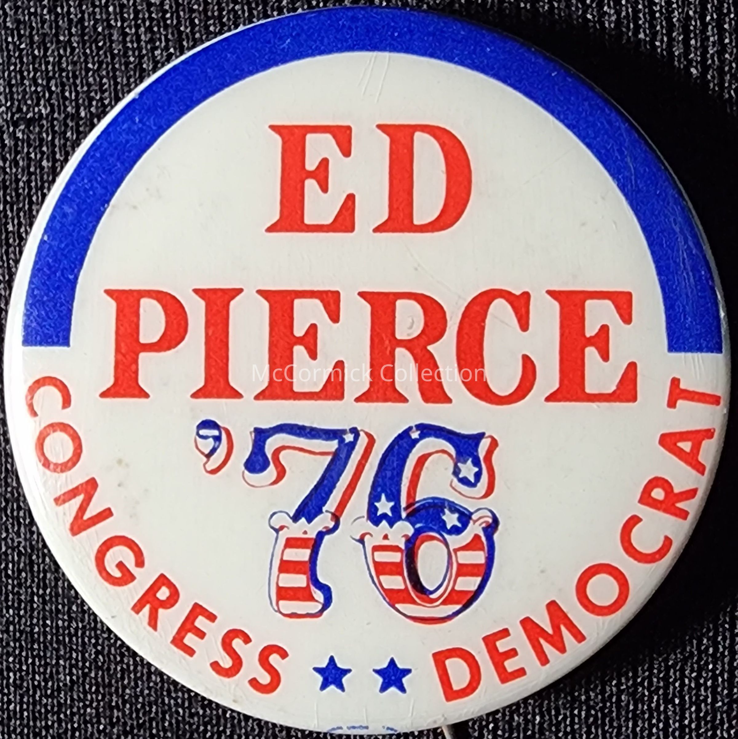 A 1.5" red, white, and blue political button for Pierce for Congress, Democrat, 1976.