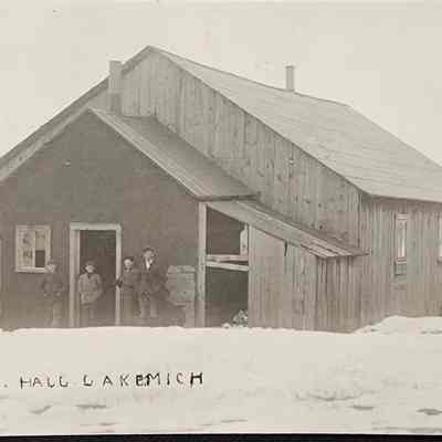 Real photo postcard of the K.O.T.M. Hall in Lake, Michigan. Shows an old wood building. Postslly unused. Addressed to Clifford Malosh, Lake, Mich.