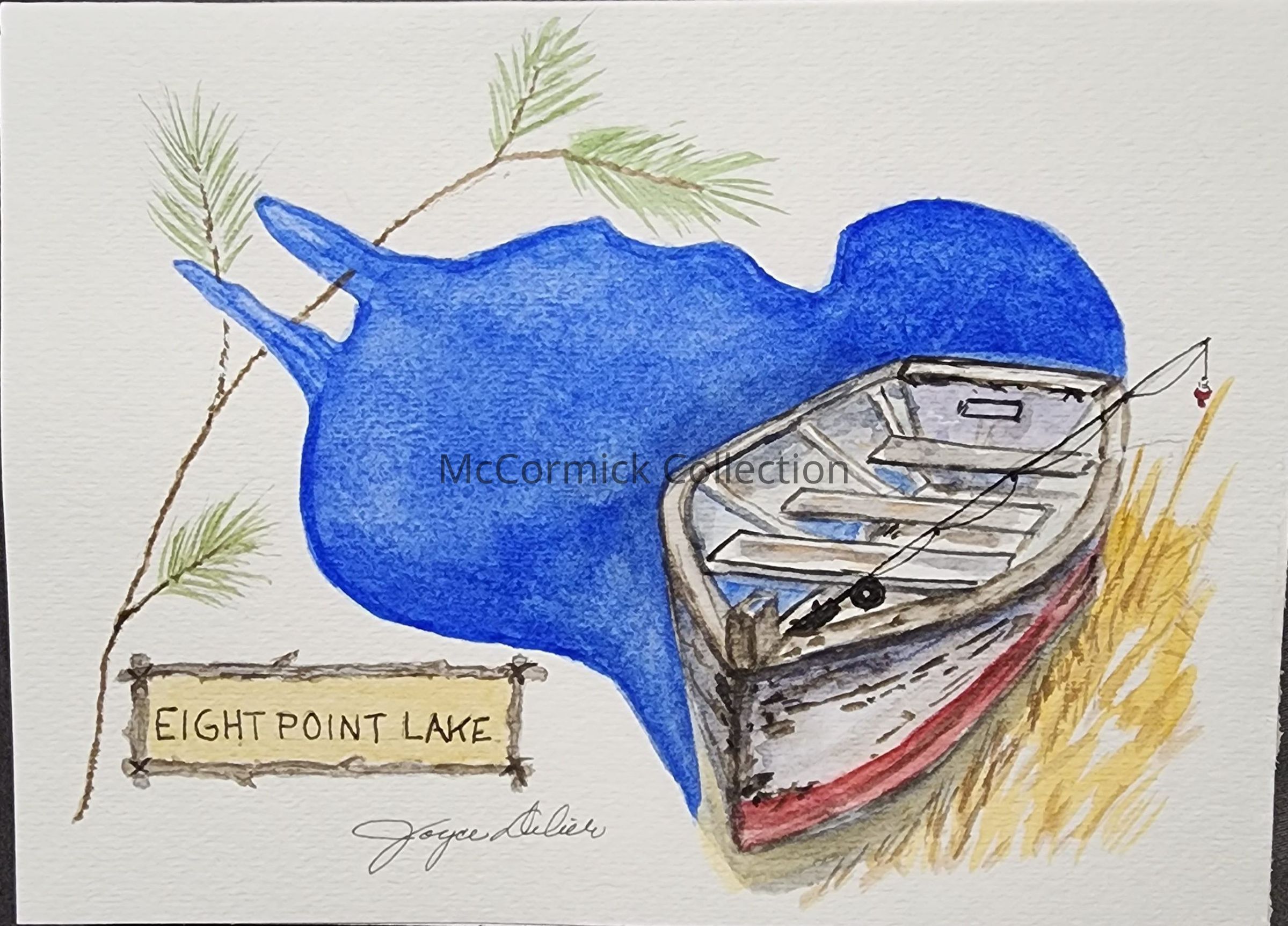 Card size Watercolor by Joyce Delier of Eight Point Lake.