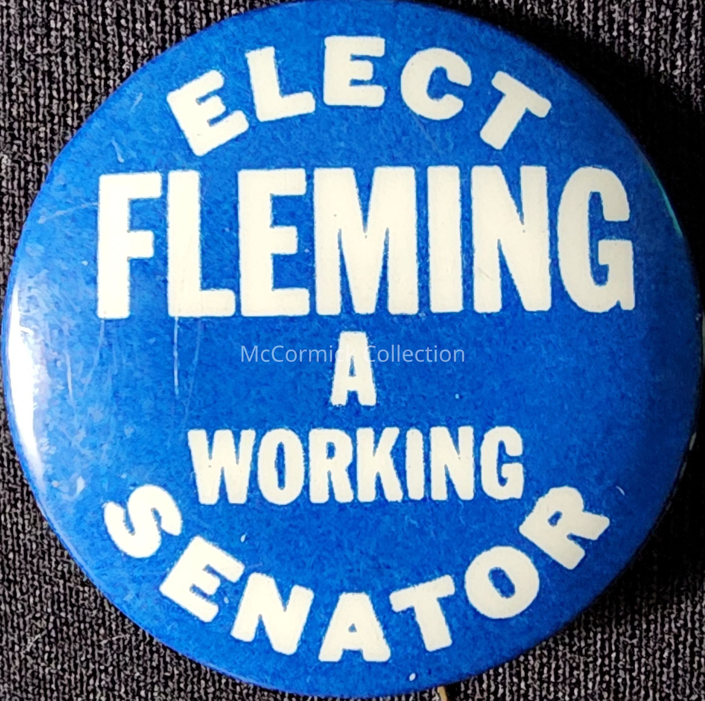 A 1 3/8" political button for Fleming for Senator. Unidentified candidate. Button by A. Dean Watkins.