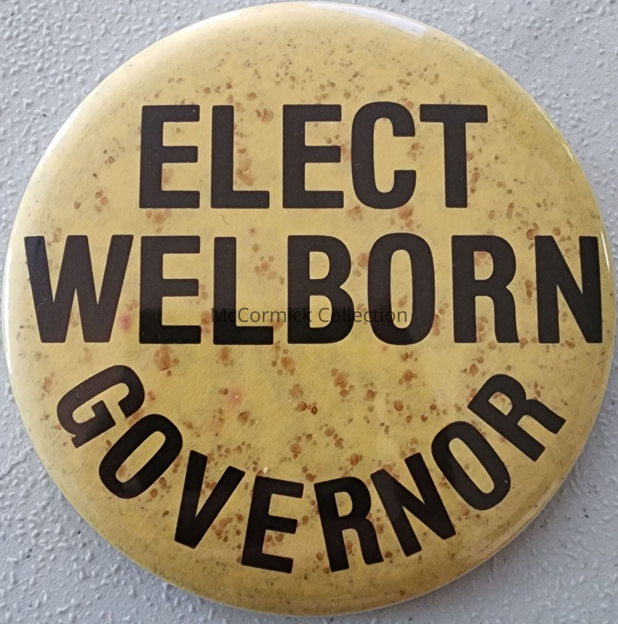 A 3.5" yellow and black political button for State Senator Jack Welborn for Governor, 1982, primary.