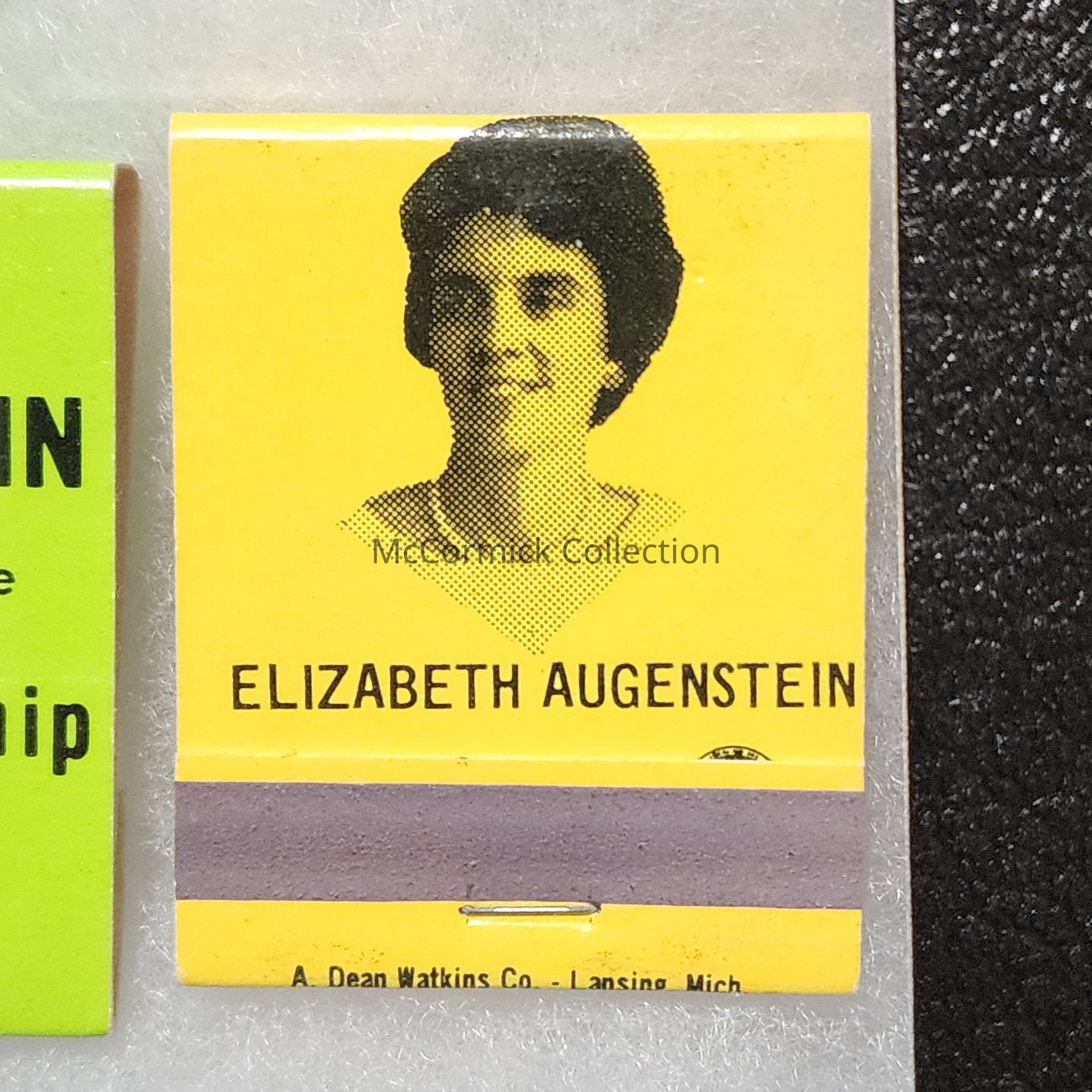 Political matchbook for Elizabeth Augenstein for Delhi Township Treasurer. Yellow and black colors.