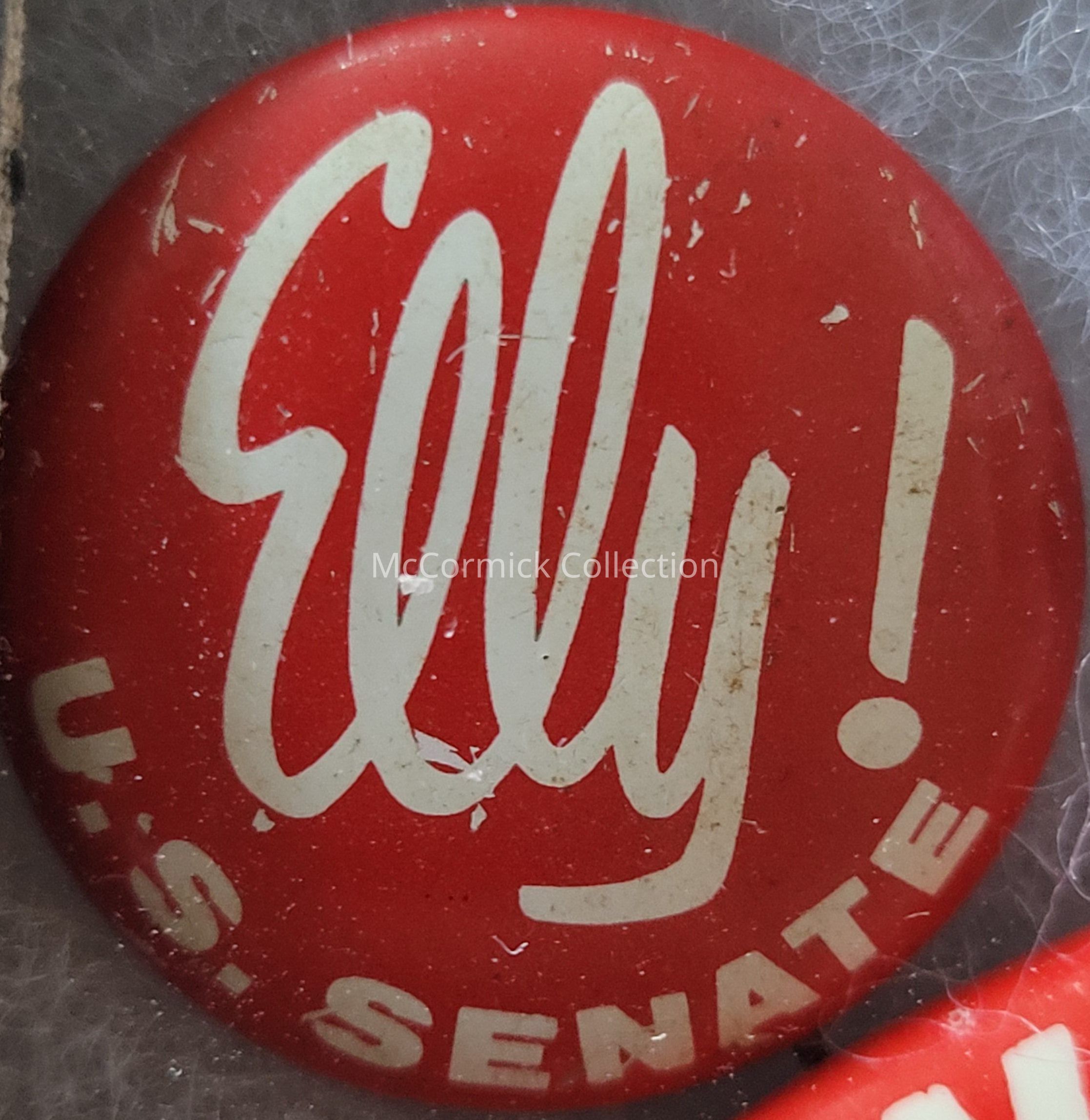 A 1" red and white political button for Elly Peterson for United States Senator, 1964.