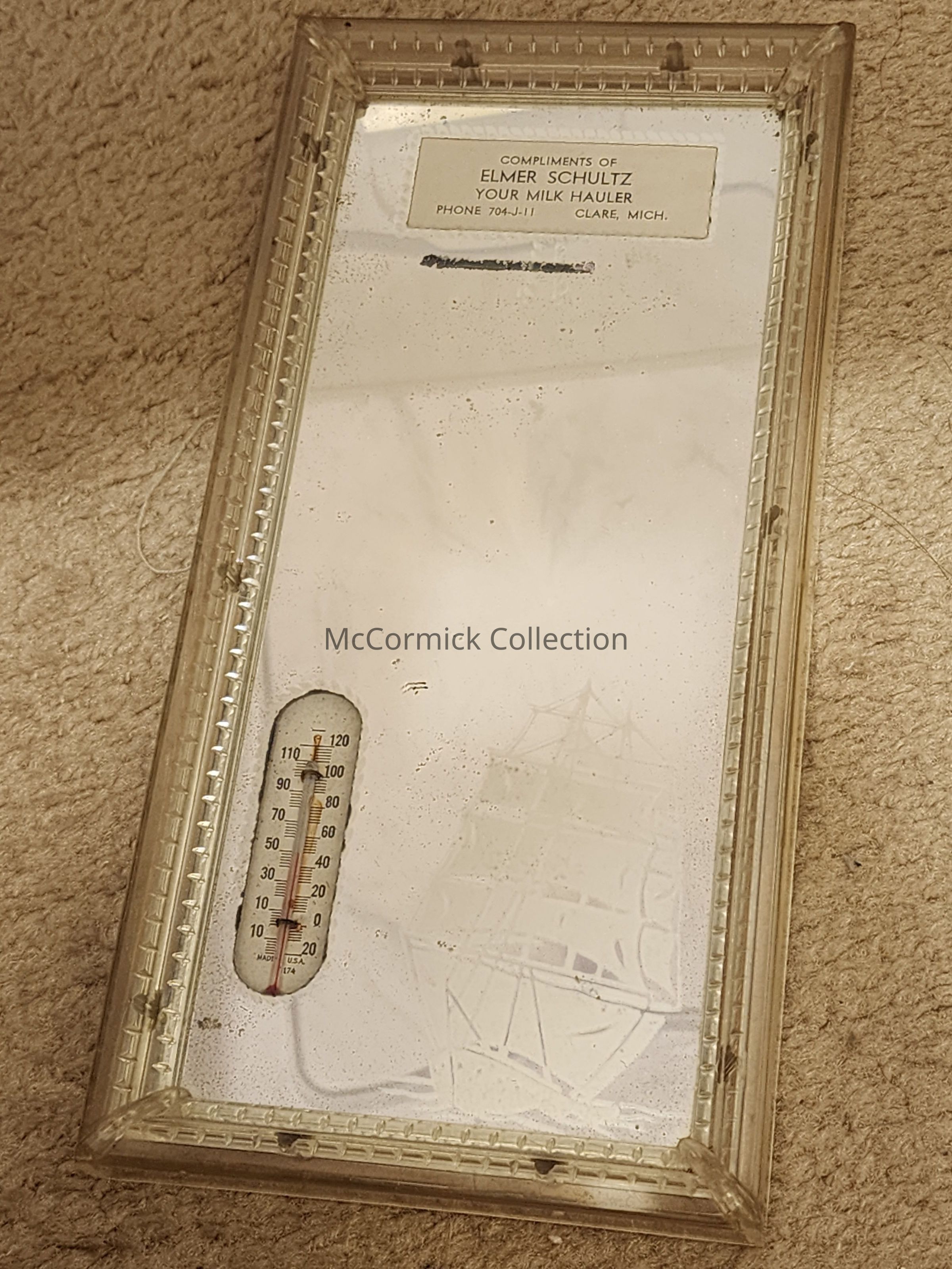 Elmer Schultz Milk Hauler, Clare, Mich., Advertising Mirror