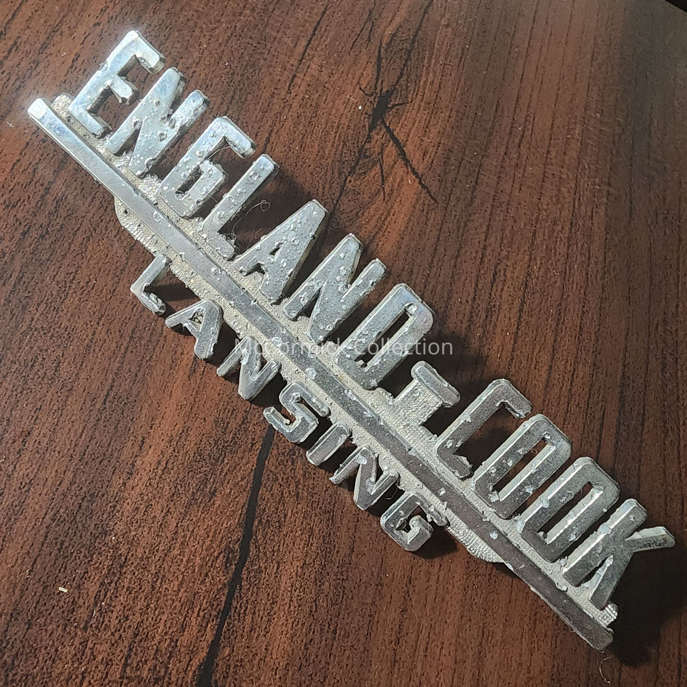 An aluminum vehicle dealership badge for the England-Cook dealers in Lansing, Michigan.