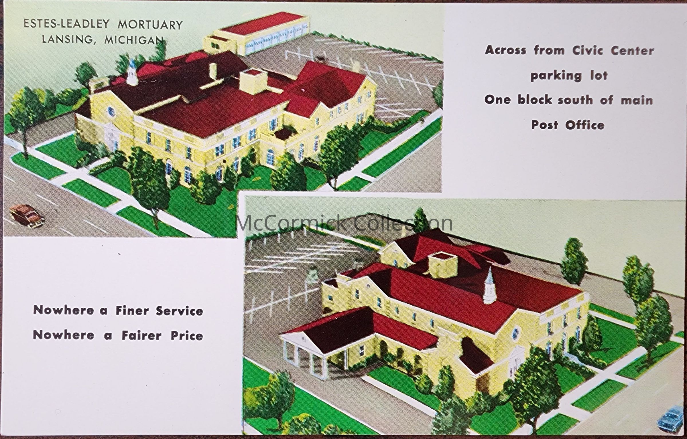 Estes-Leadley Mortuary, Lansing, Michigan Postcard