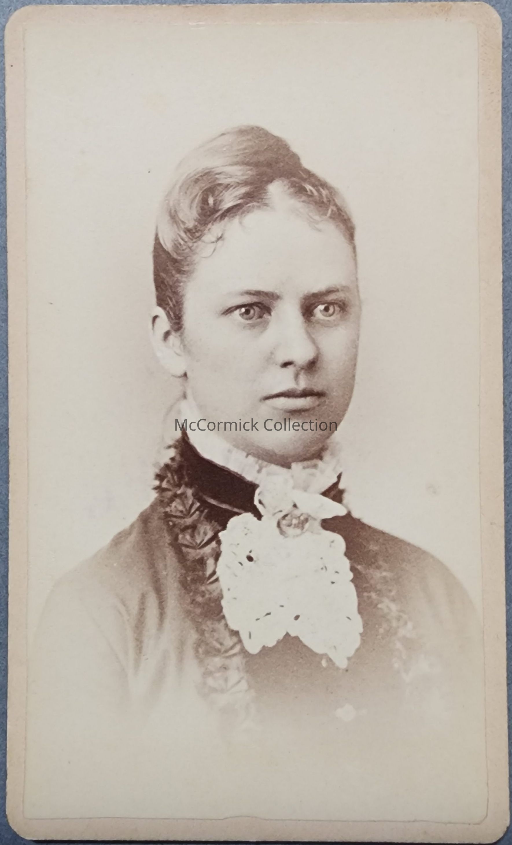 Carte de visite photograph of Eva Coryell, the first woman to graduate from MAC in the 1870s. Photo by John Harvey Scotford. Circa 1877-81.