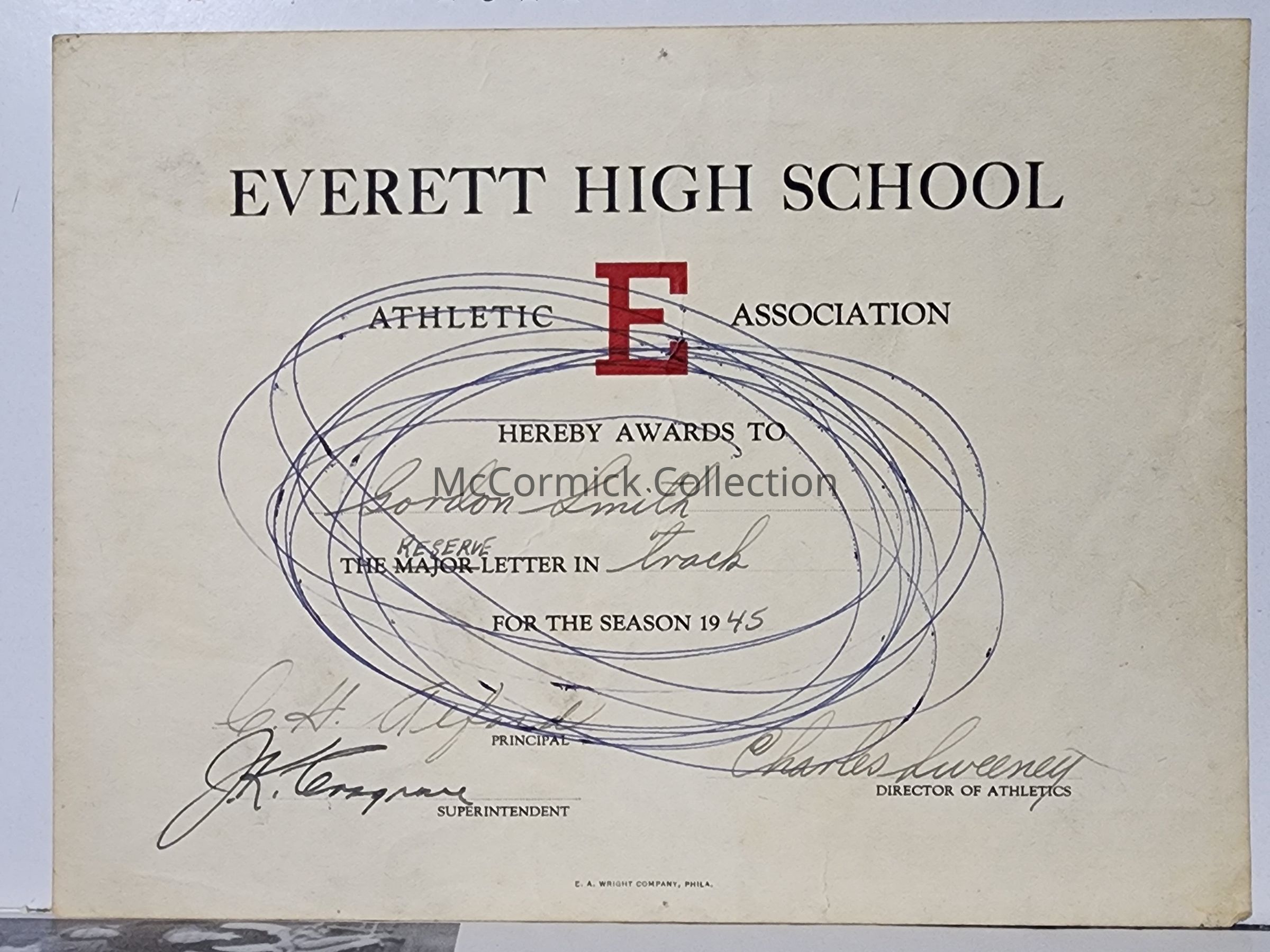 Everett High School Athletic Association 1945 Award