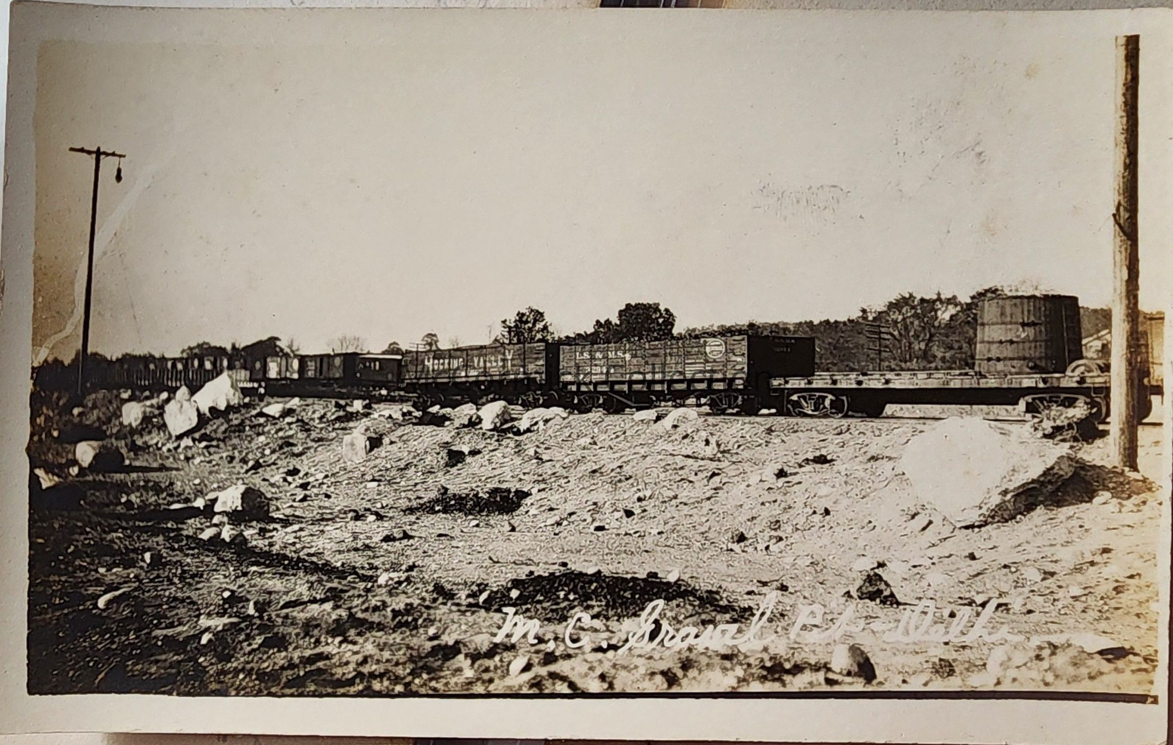Real photo postcard of the Delhi gravel pit along Aurelius Road and the Michigan Central railroad tracks. Postally unused.