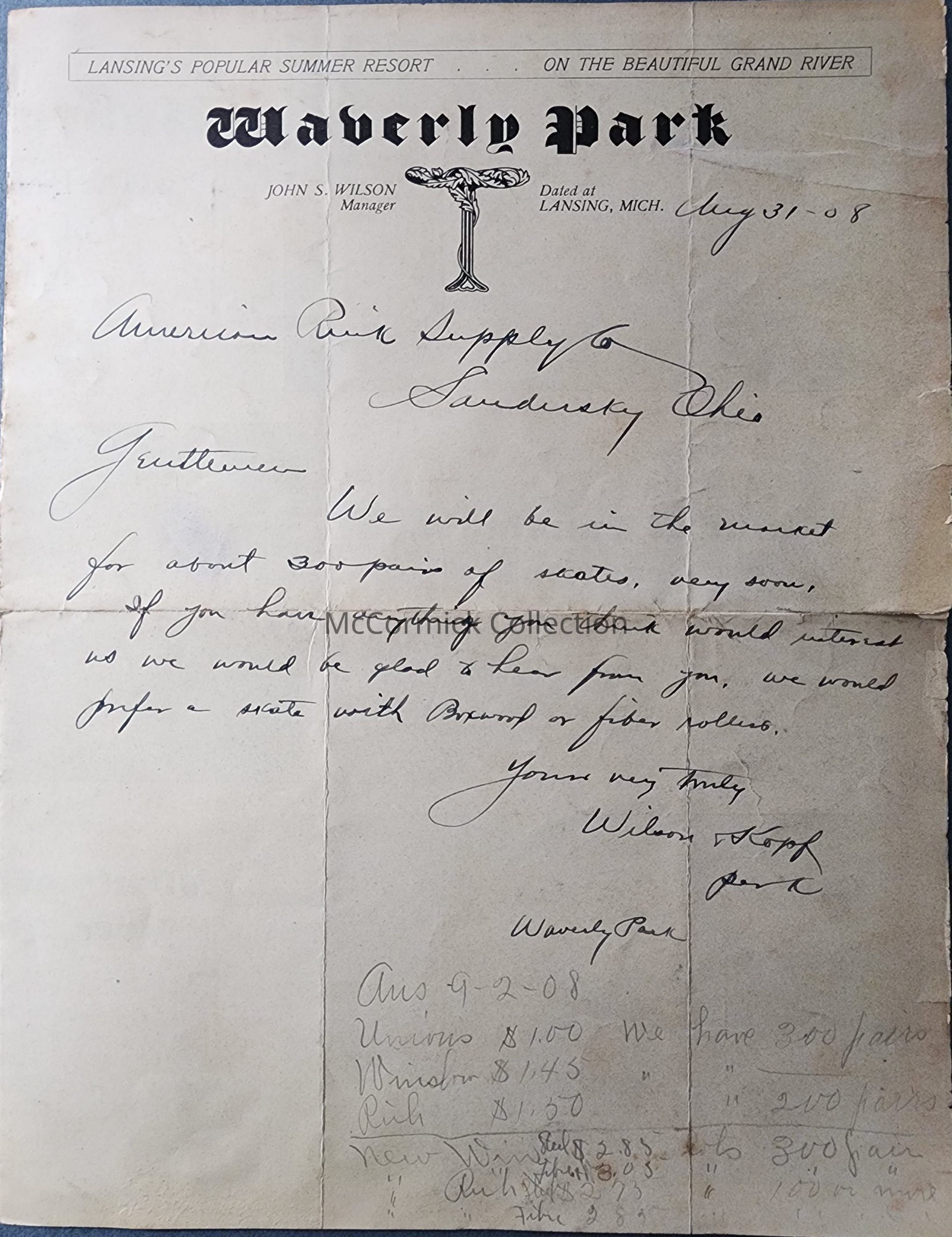 A fold-out letter and advertising flier for Waverly Park in Lansing, circa 1908.