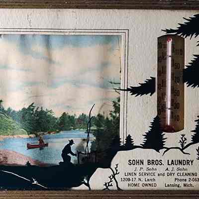 A silhouette advertising thermometer from Sohn Bros. Laundry of Lansing, Michigan.