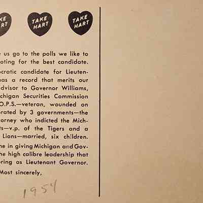Philip A. Hart Democrat for Lieutenant Governor Campaign Postcard