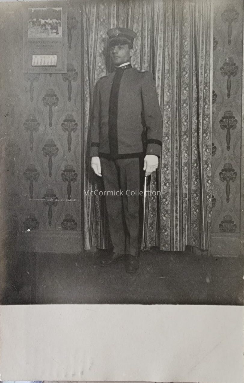 Real photo postcard of a Michigan Agricultural College cadet in uniform.