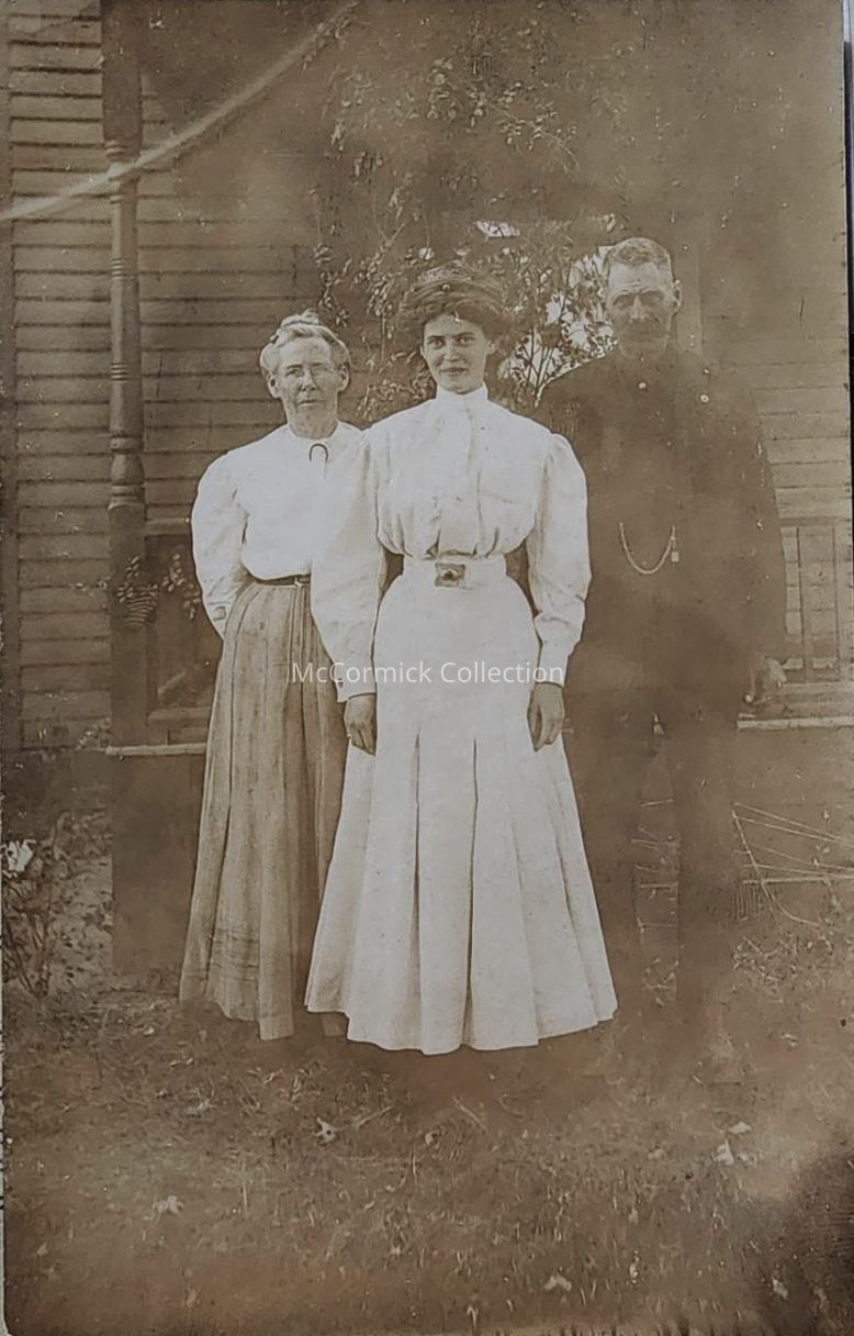 Real photo postcard of three people, a family possibly from Lansing, by Bovee. Postally unused.