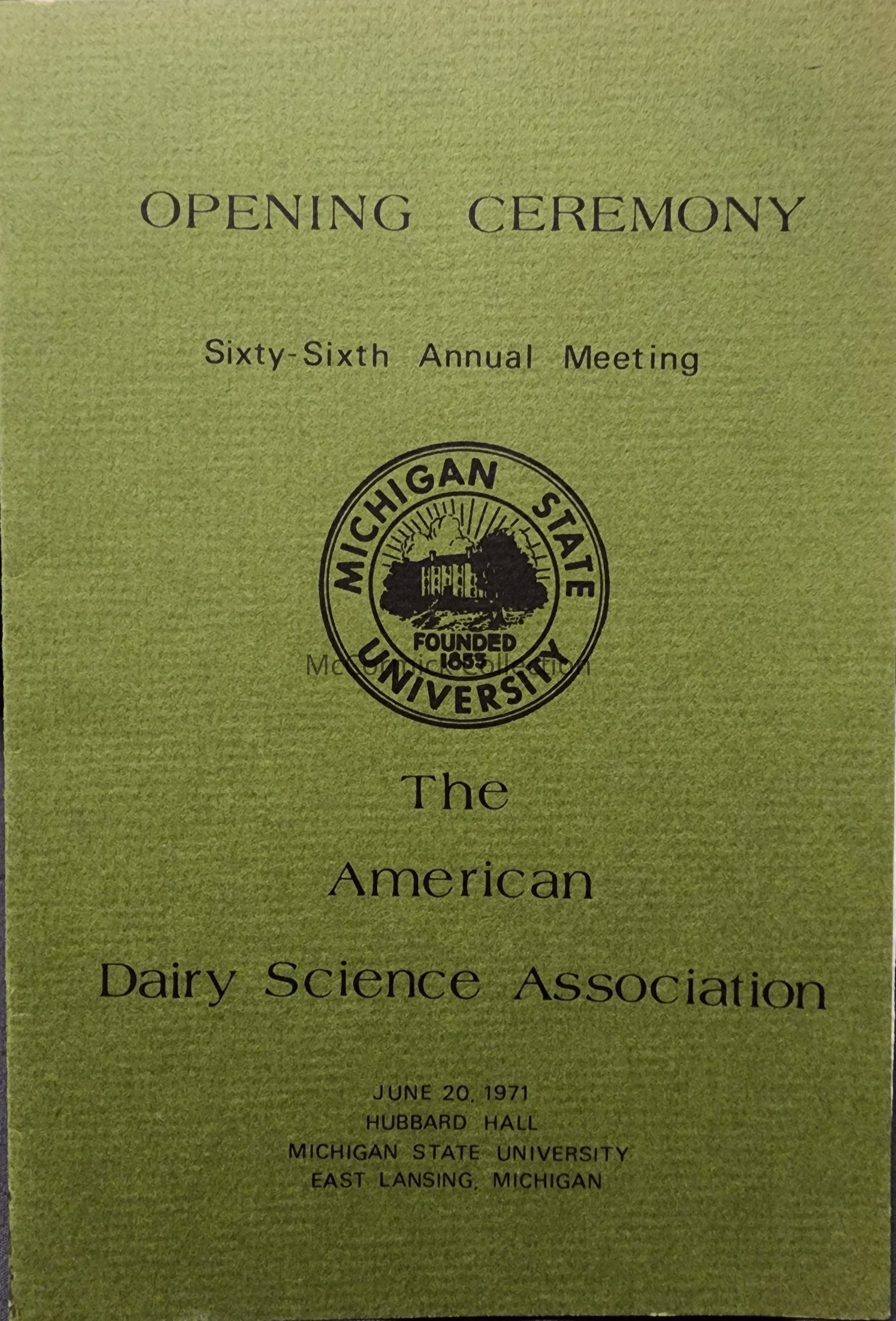 American Dairy Science Association 1971 Annual Meeting MSU Program
