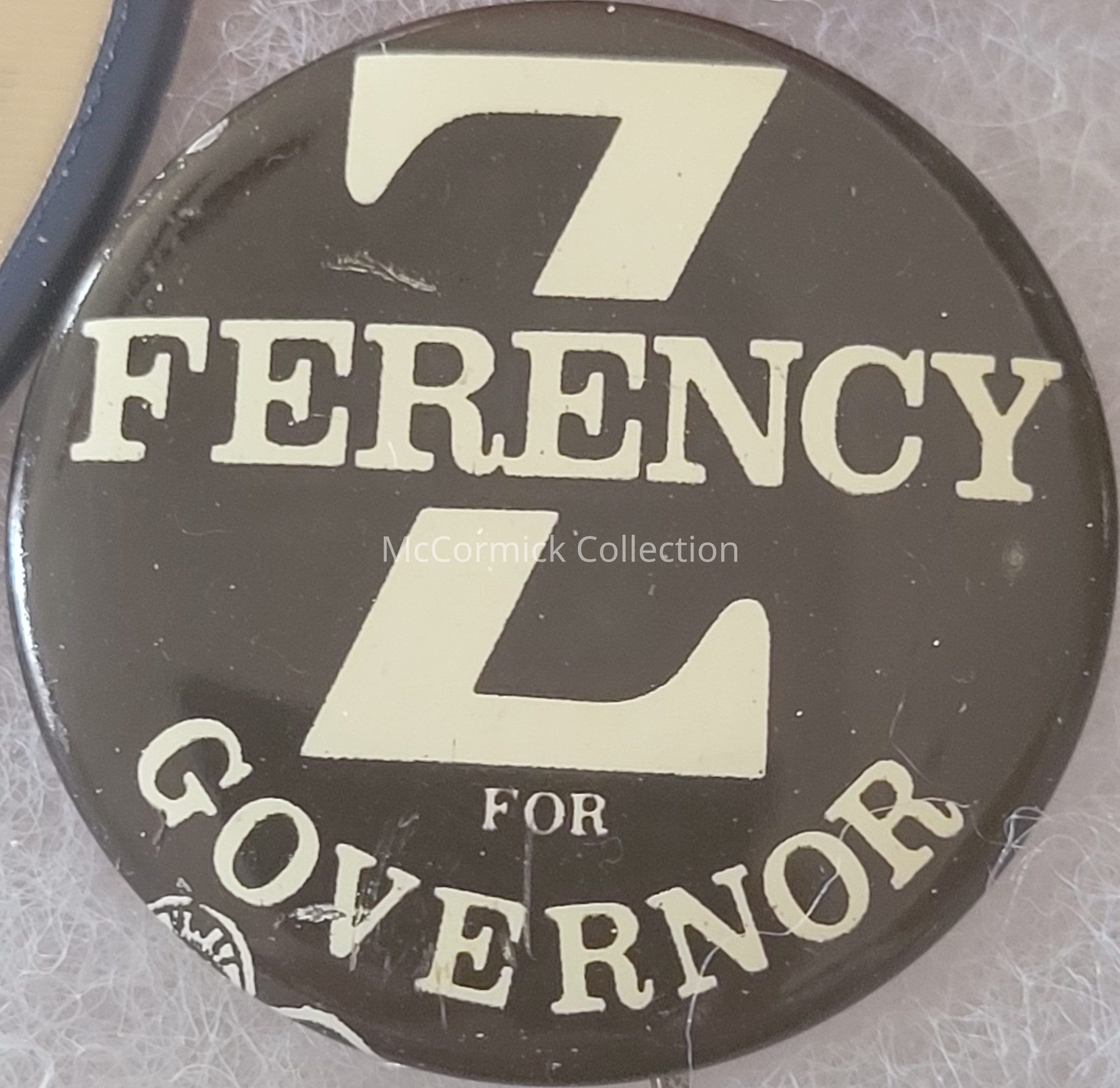 A 1.25" black and white political button for Zolton Ferency for Governor.