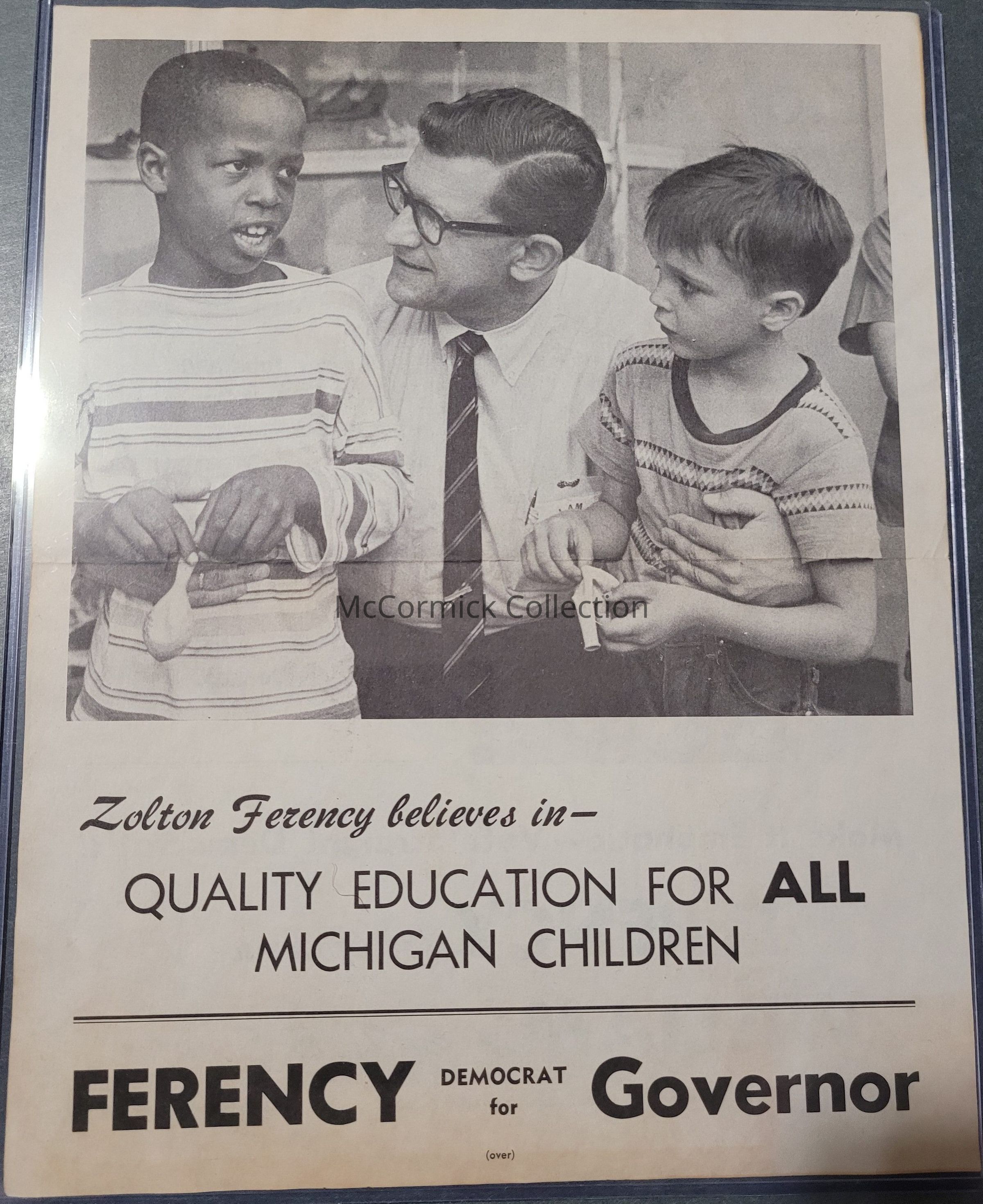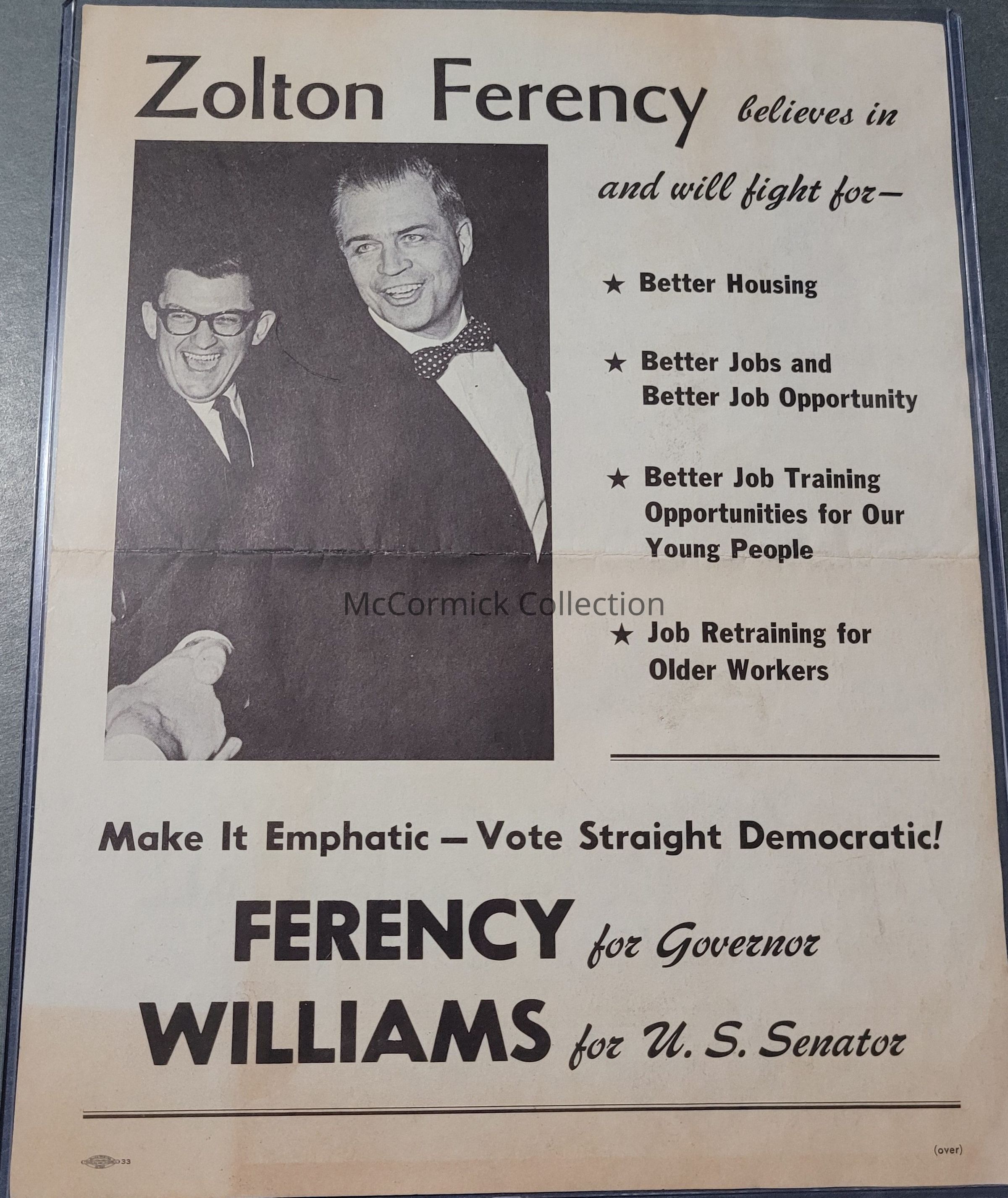 A 1966 coattail political flier for Zolton Ferency for Governor and G. Mennen Williams for U.S. Senate.