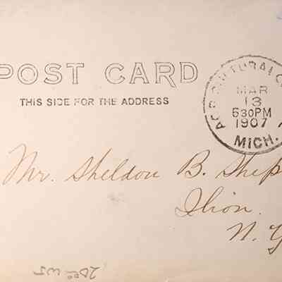 Shows the roof of the Women's Building (Morrill Hall), and laboratory row. Postmarked 1907 Agricultural College.