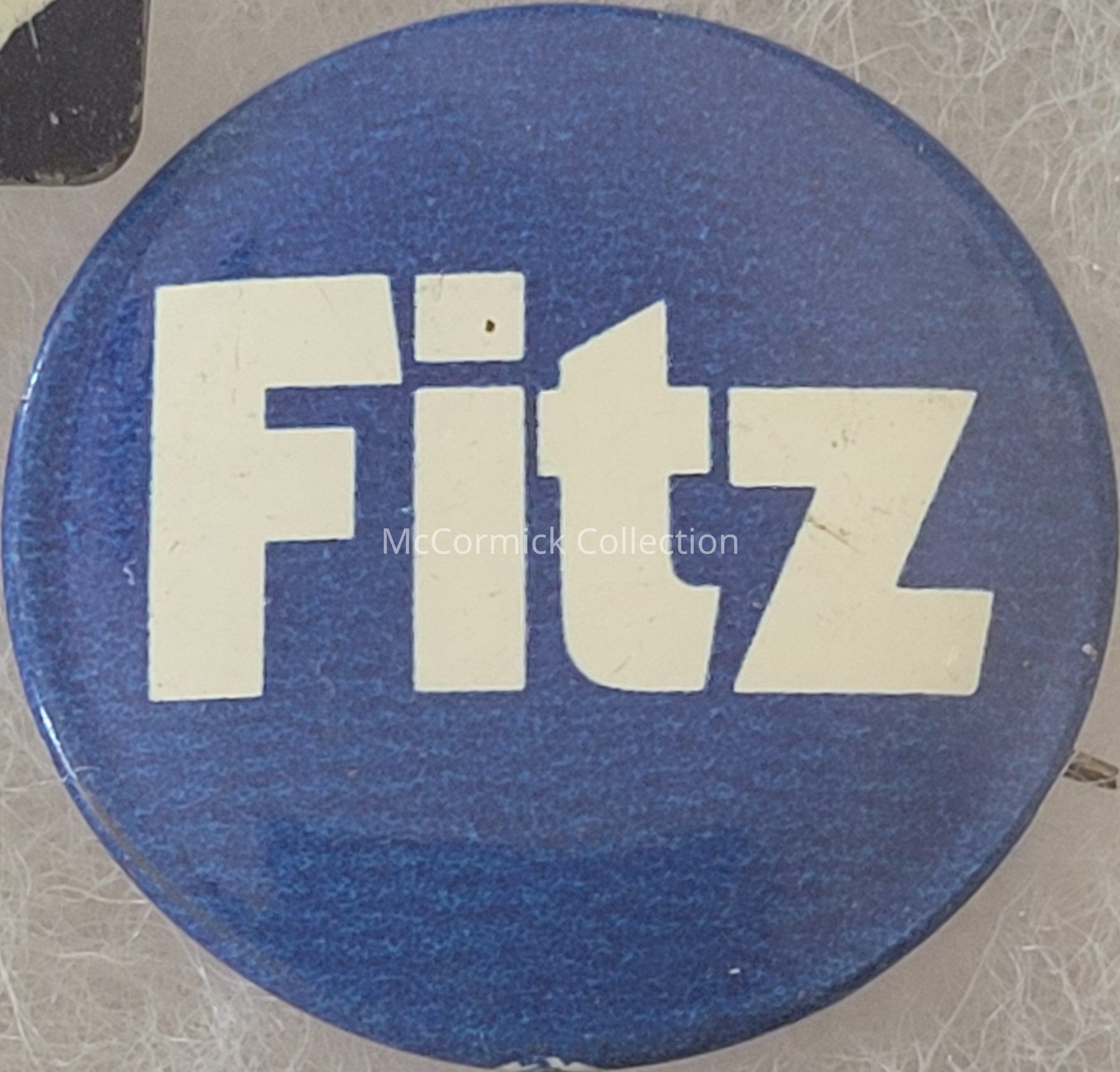 A 1" blue and white political button for Fitz, likely a Fitzgerald.