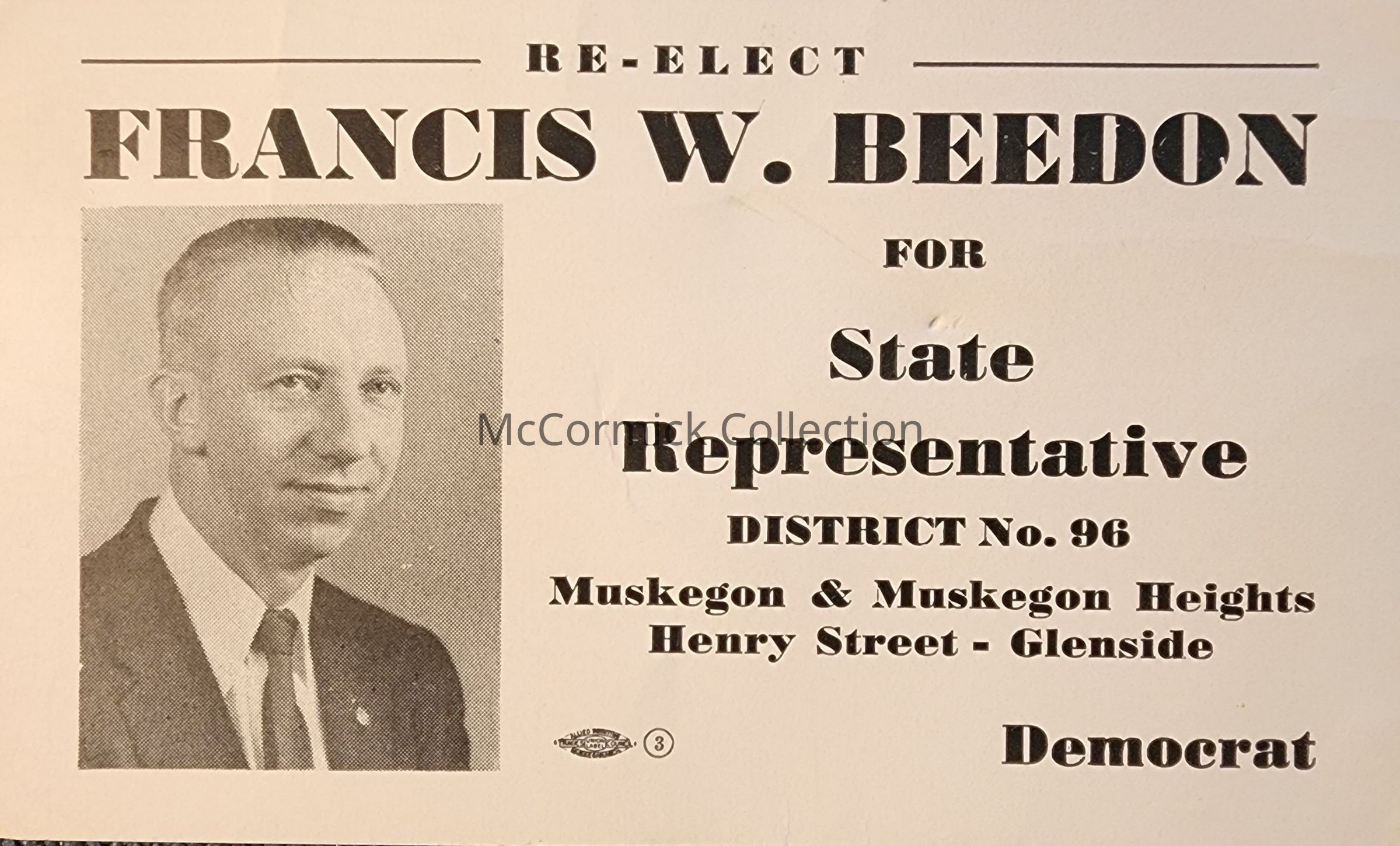 Reelection. District 96, Muskegon. From the Nancy Waters collection.