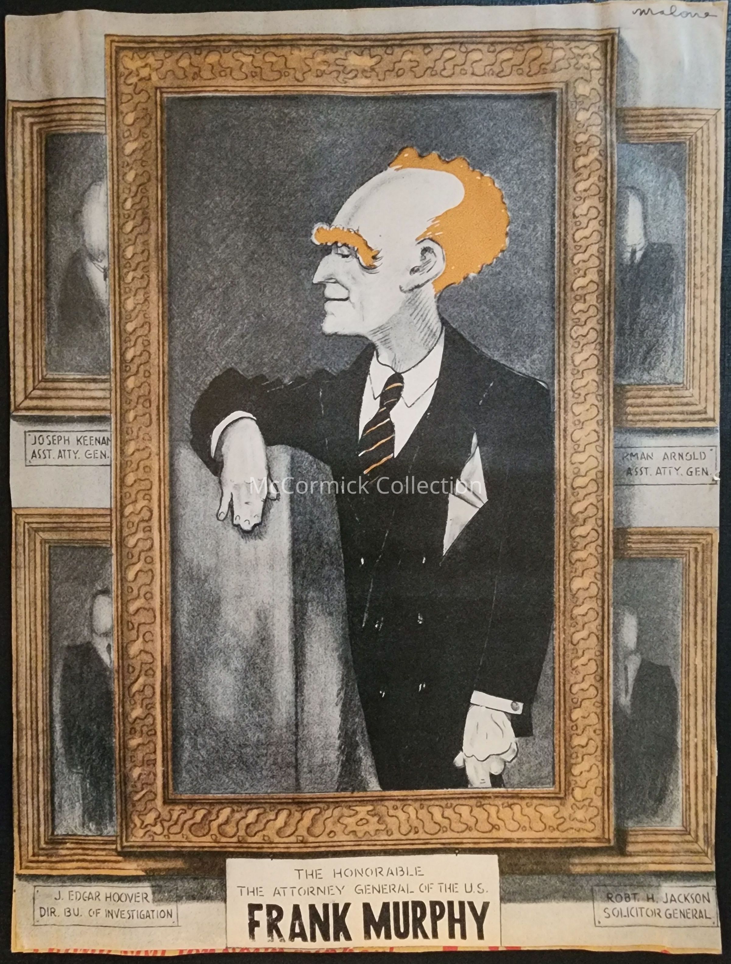 Political cartoon depicting "The Honorable The Attorney General of the U.S. Frank Murphy." Circa 1940.